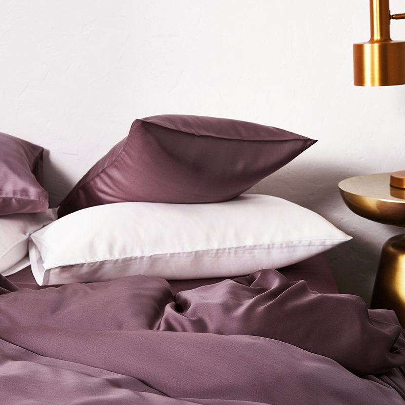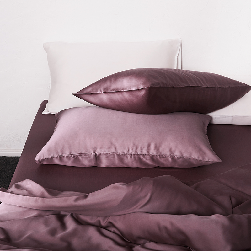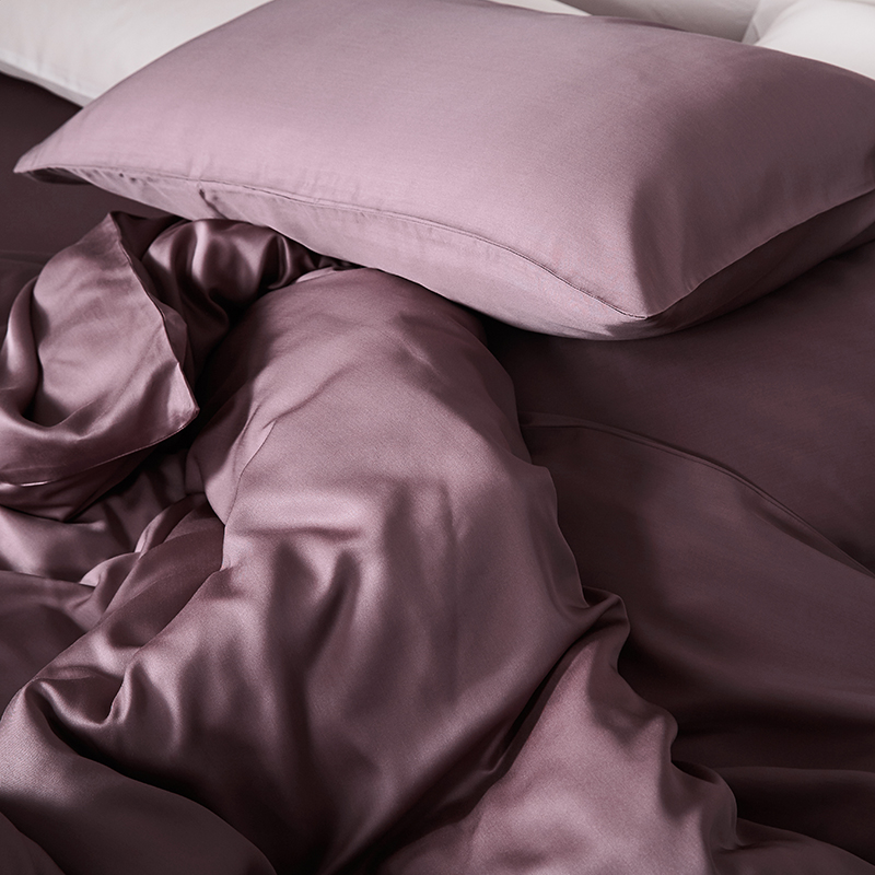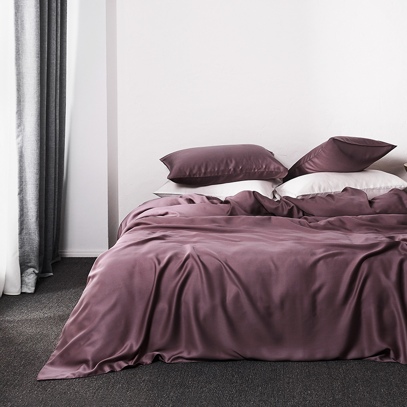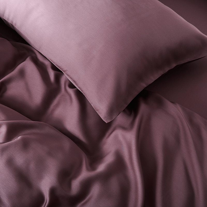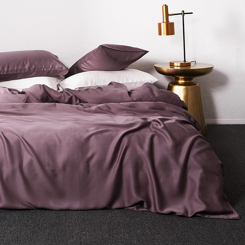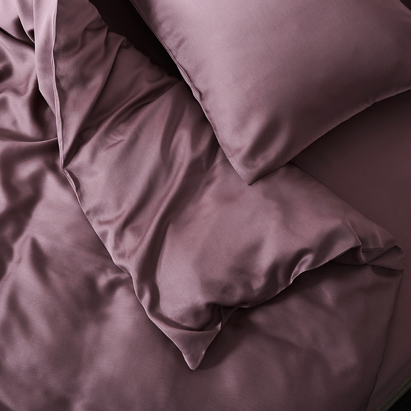 涞澳家纺 2018新款素色天丝四件套 紫薇豆沙