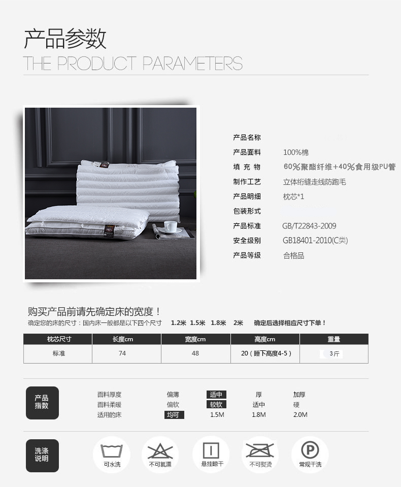 当前位置: 91家纺网 > 商品网购 > 枕头/枕芯/保健枕/颈椎枕 > 普通枕芯 > 赛格时代家居 全棉PE软管复合保健枕芯