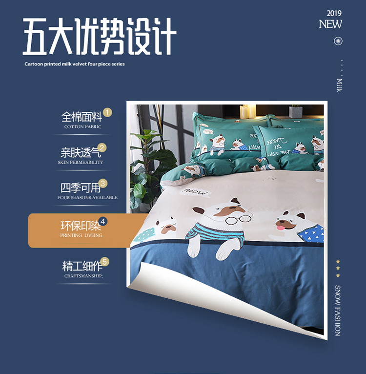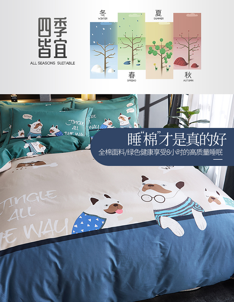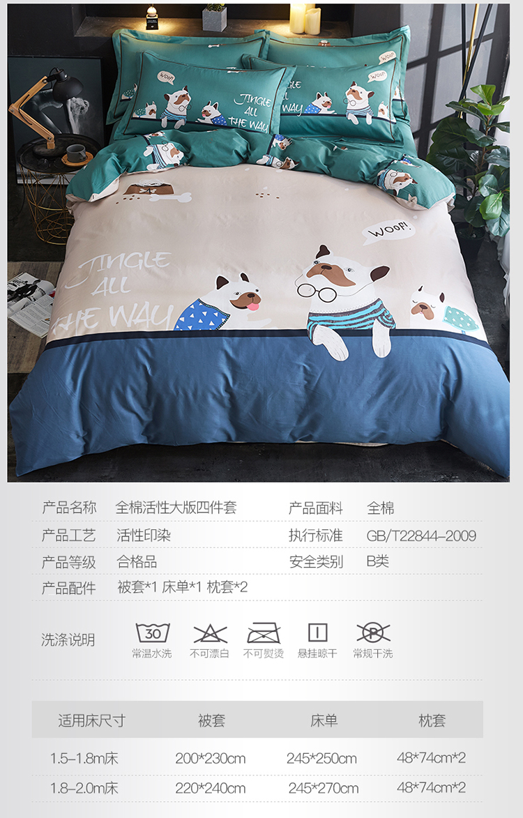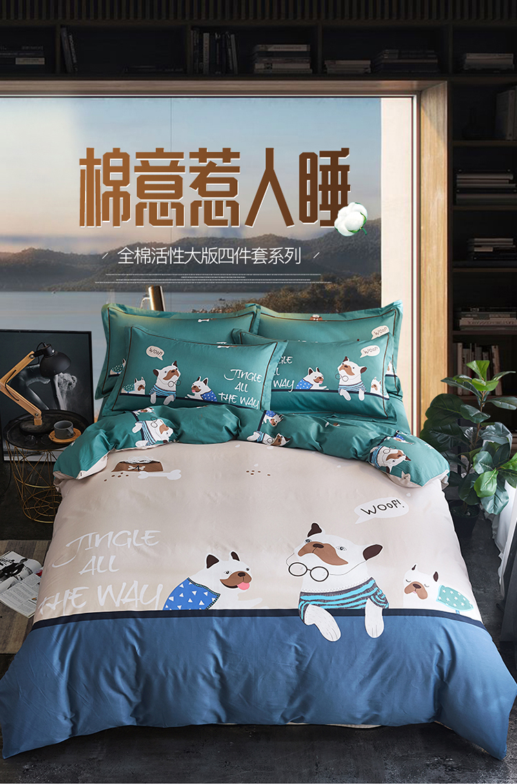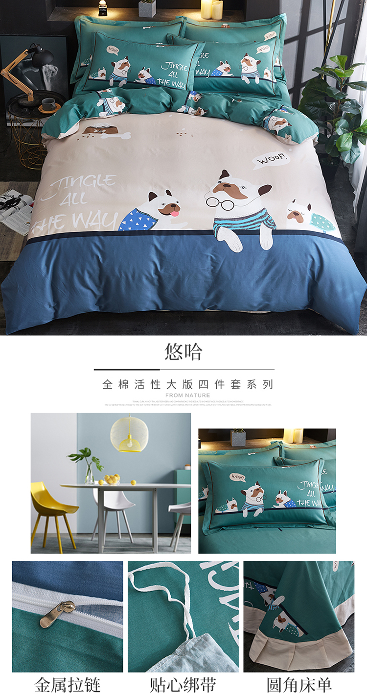 雲归梦 2019全棉活性大版简约卡通风格四件套 悠哈