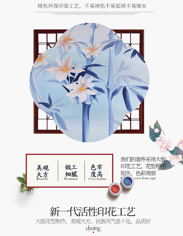商品名称:雲归梦 2019全棉活性大版中国风花卉四件套 宫墙柳