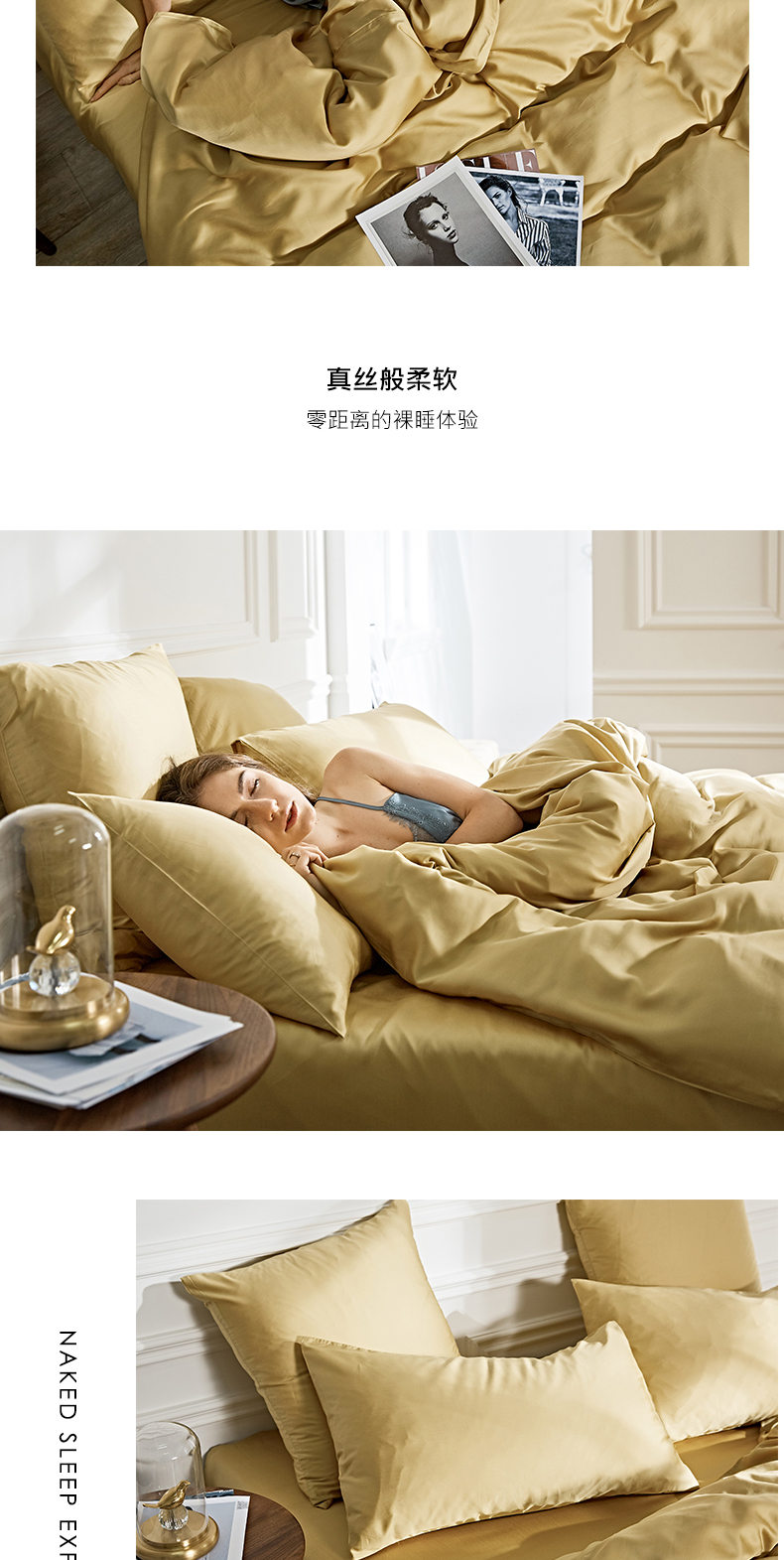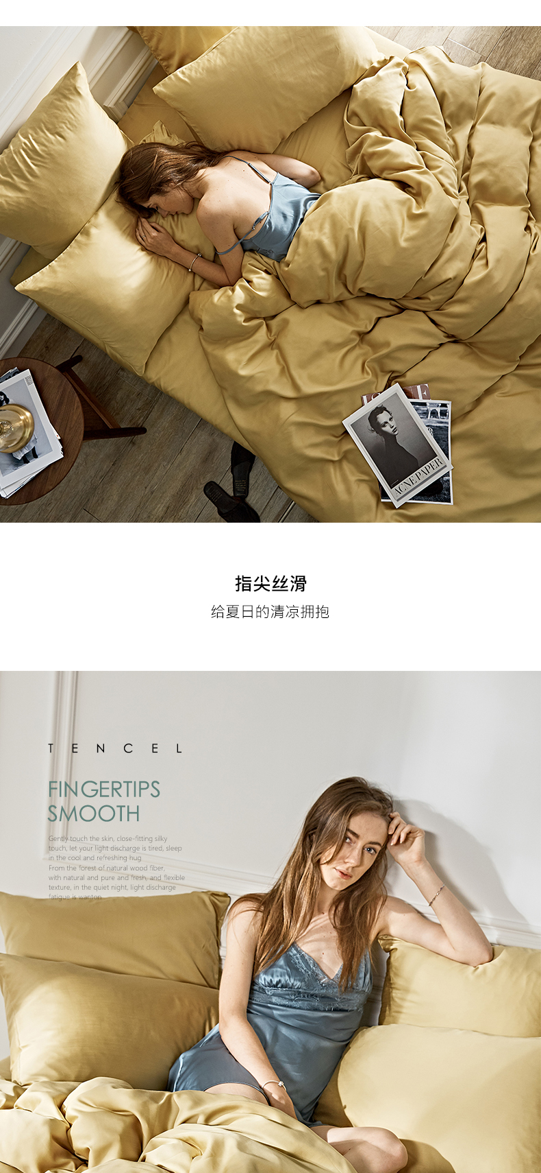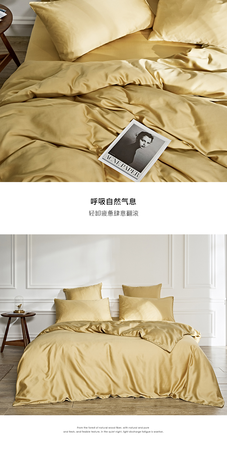 涞澳家纺 2018新款素色天丝四件套 缃黄