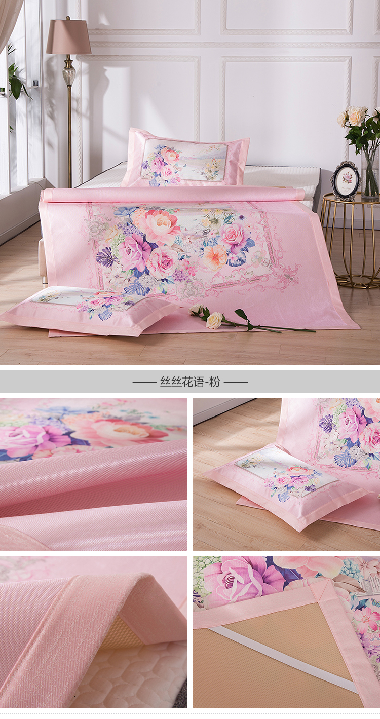 商品名称:2024年数码印花欧式宽边冰丝席三件套空调软席双人花卉款凉席
