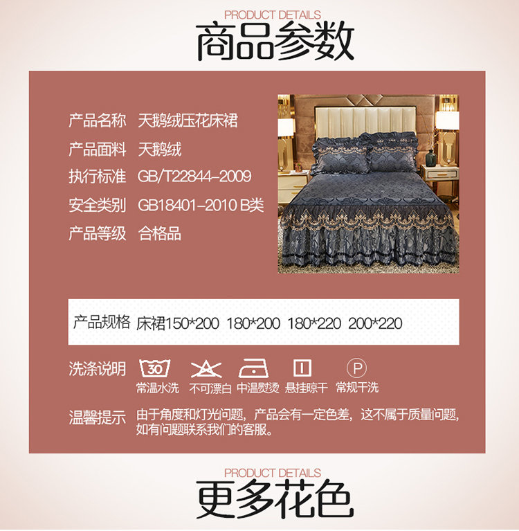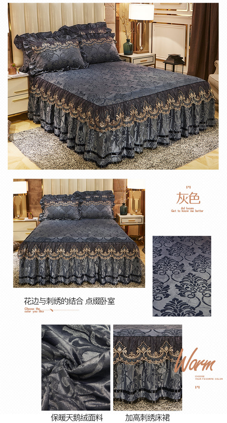 商品名称:网红馆 2025新款天鹅绒盛世经典单品床裙 灰色