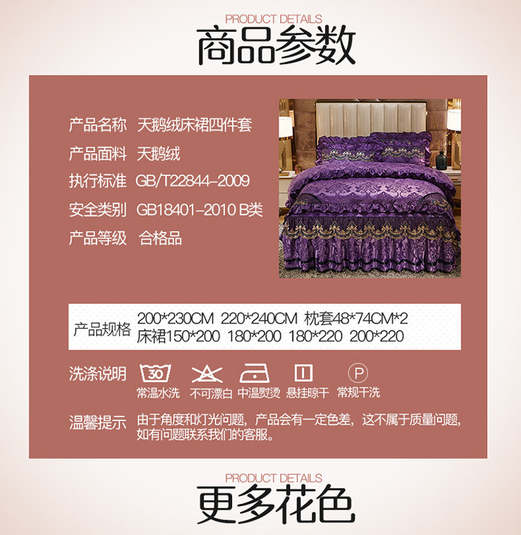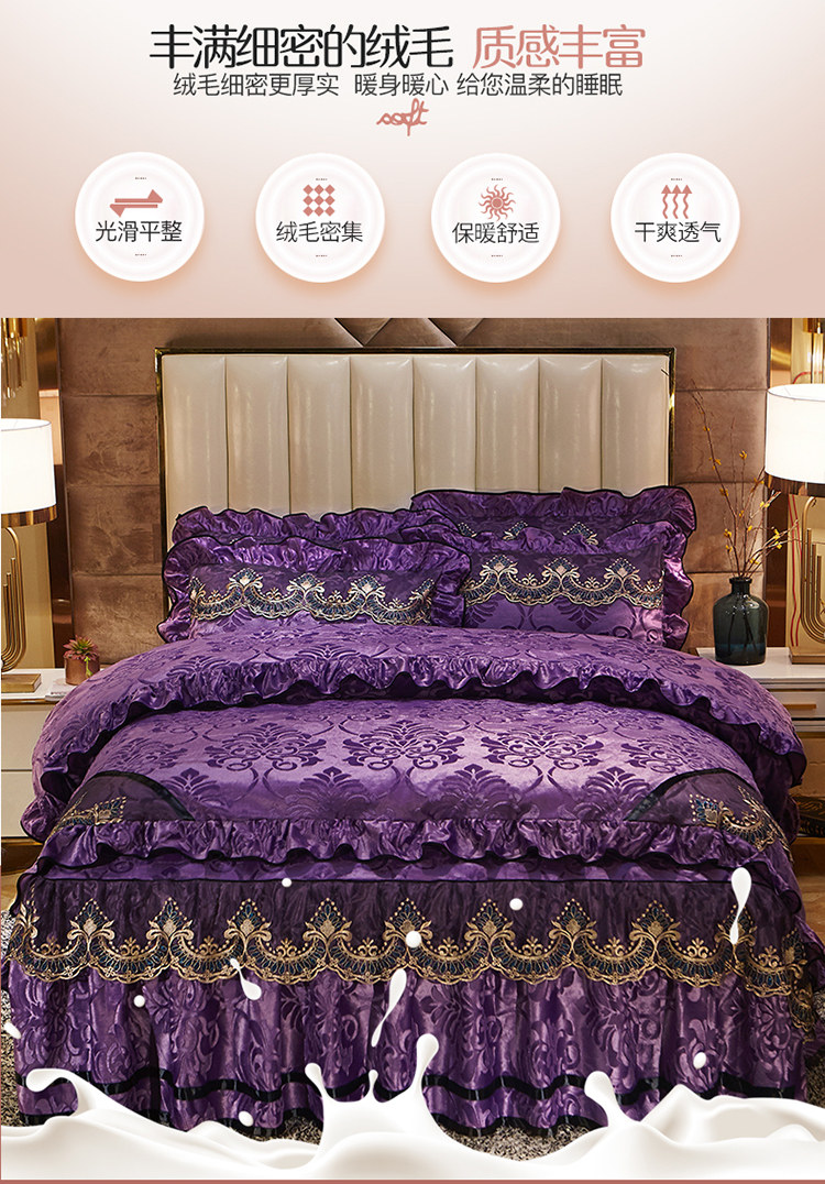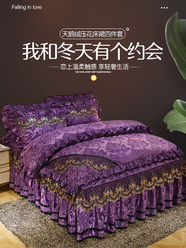 商品名称:网红馆 2025新款天鹅绒盛世经典床裙四件套 深紫