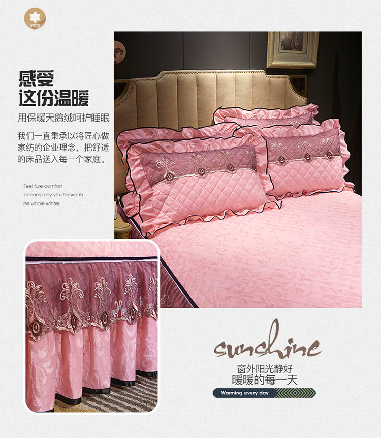 (总)网红馆(ck家纺) 2025新款色织提花牛奶绒床裙四件套-洛丽塔系列,洛丽塔-豆沙,洛丽塔-蓝色,洛丽塔-米色