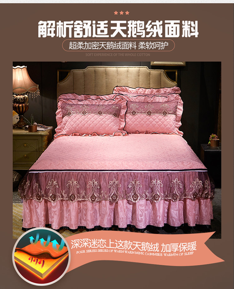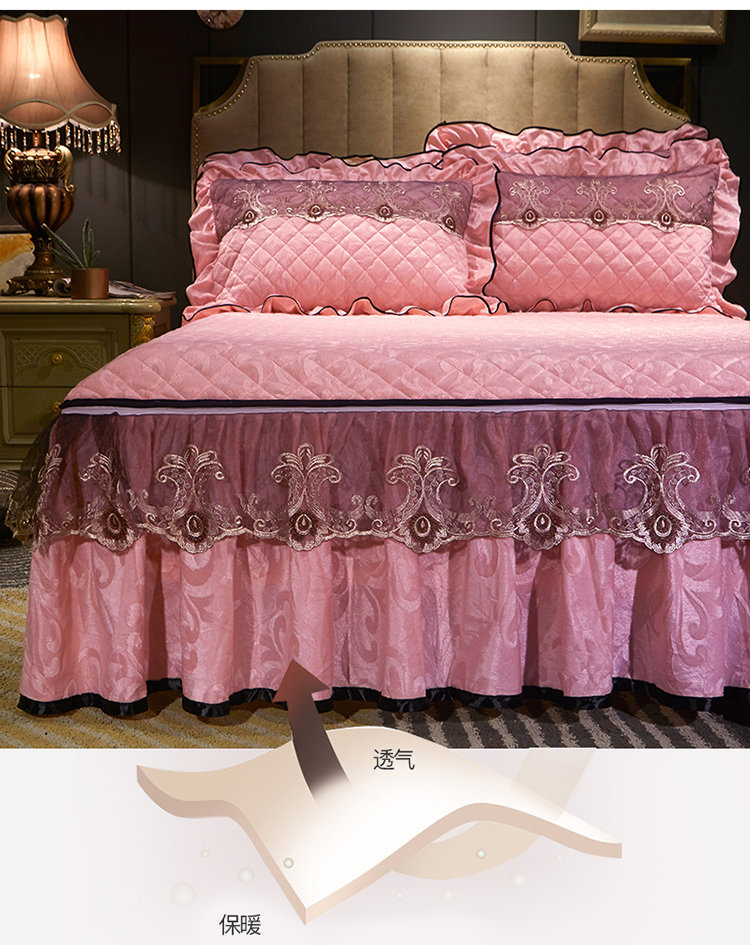 (总)网红馆(ck家纺) 2025新款亲肤舒适牛奶绒蕾丝边床裙四件套-秘密花园,秘密花园-粉色,秘密花园-卡其,秘密花园-米色,秘密花园-紫色