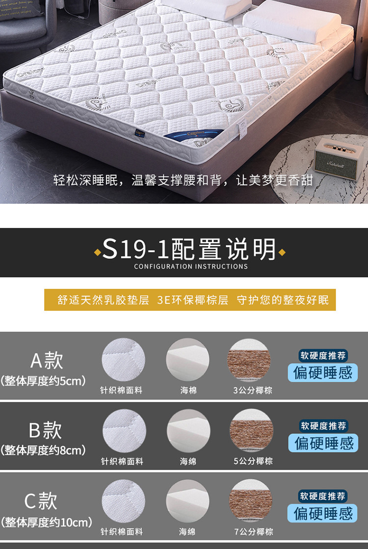顺丰包邮时奥家纺2019新款3E环保椰棕乳胶床垫场景二S19-1