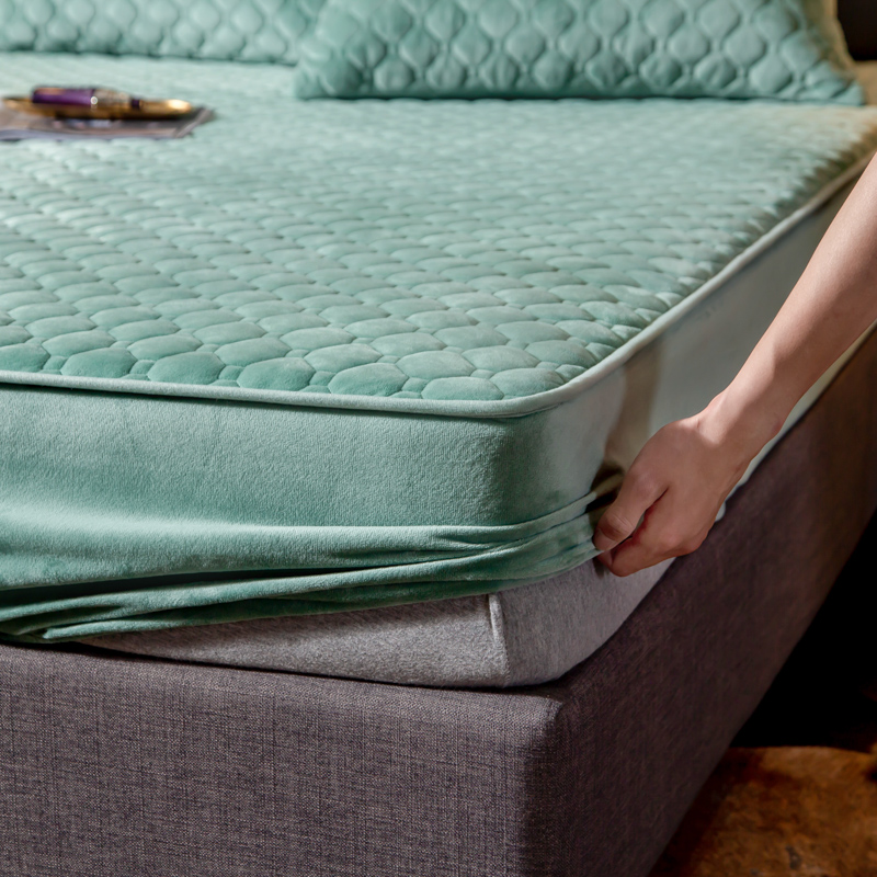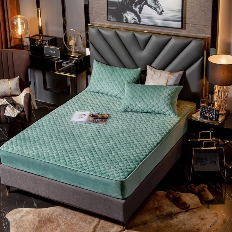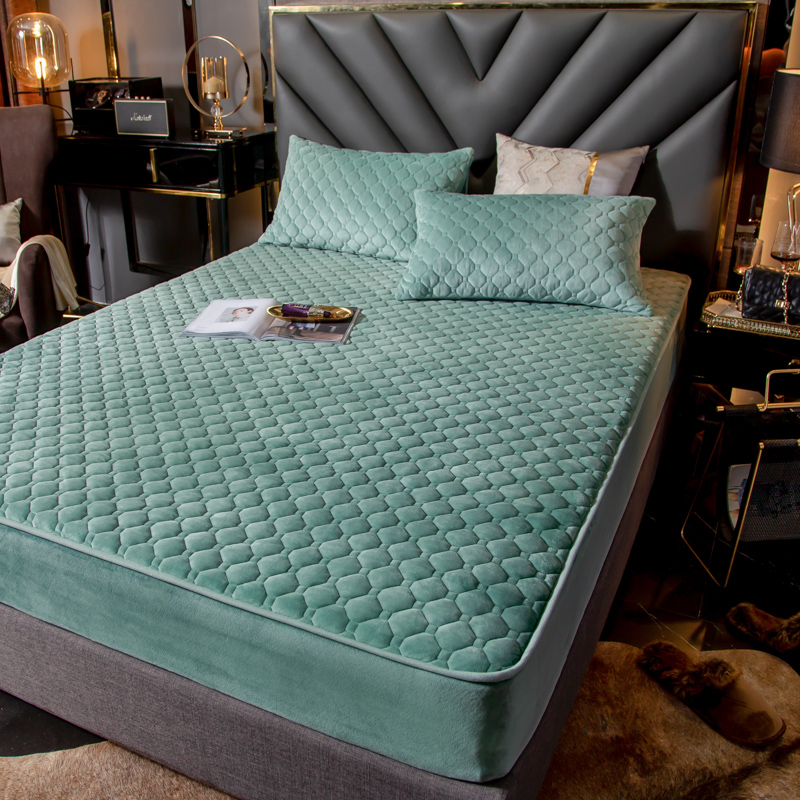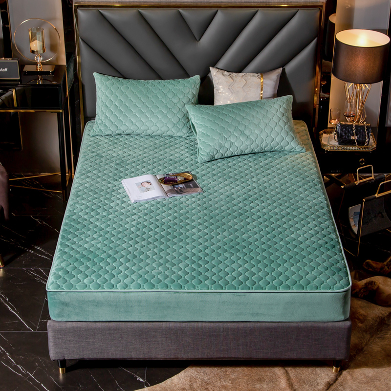 帅露家纺 2019新款蕾丝保暖绒单床笠 青草绿-蕾丝