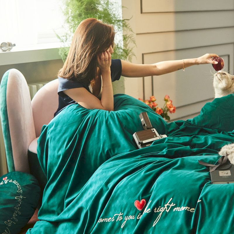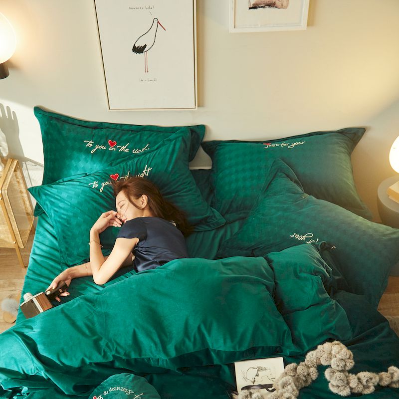 商品名称:涞澳 2019新款澳绒系列四件套 爱心—绿