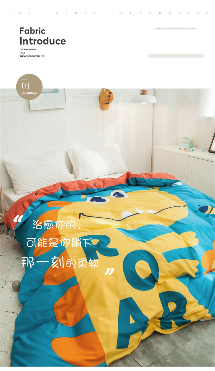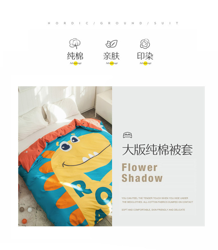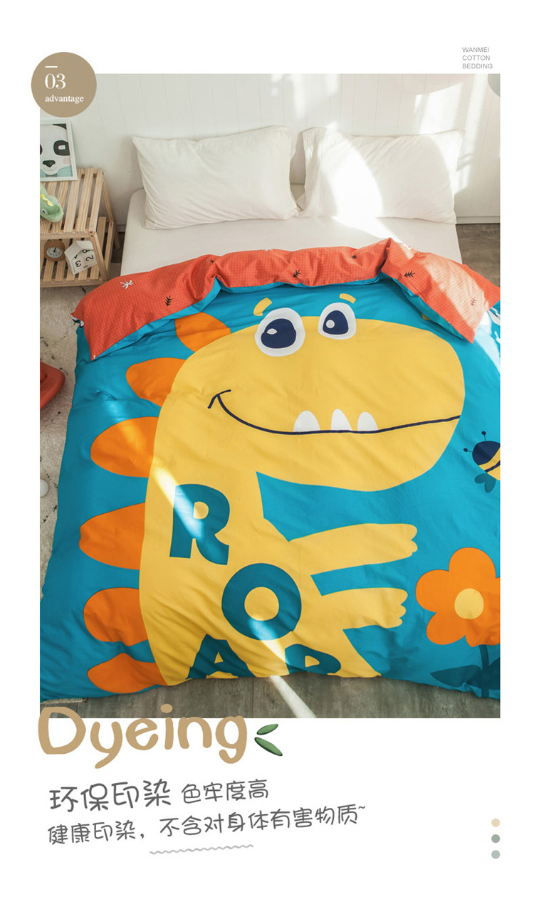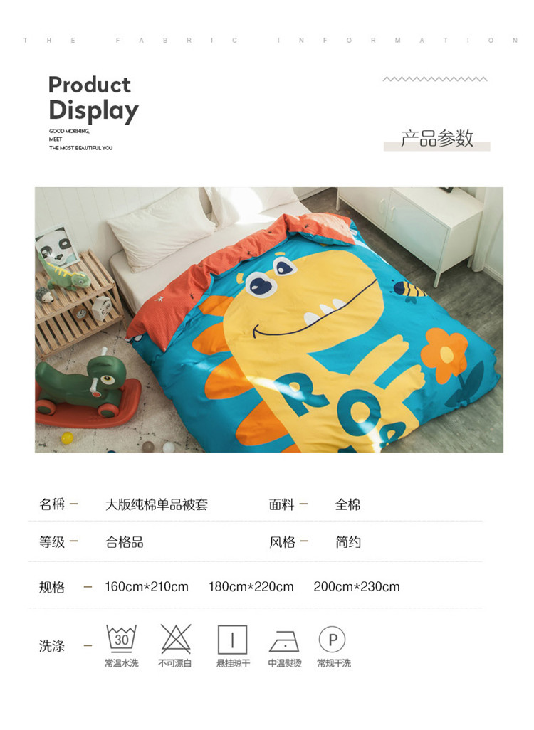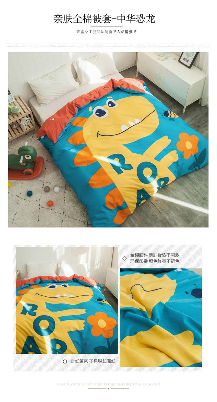 商品名称:单品大版全棉被套纯棉被套卡通儿童被套四件套学生单被套中华恐龙
