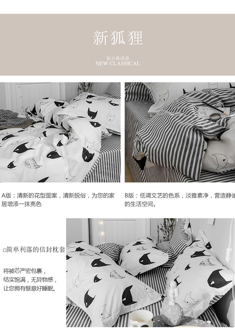 商品名称:窝米 2018全棉13372减龄卡通系列四件套床单款 新狐狸