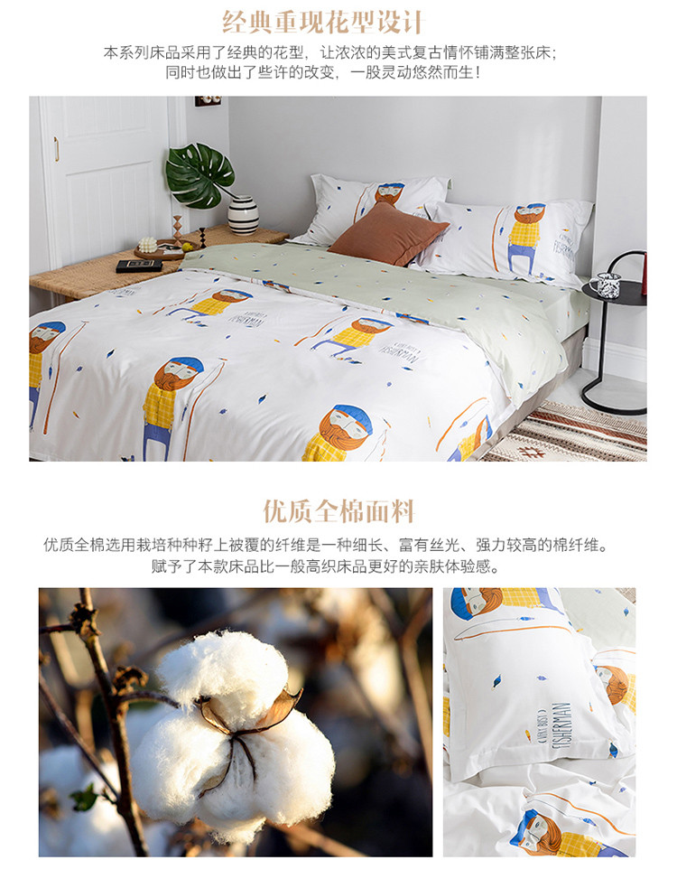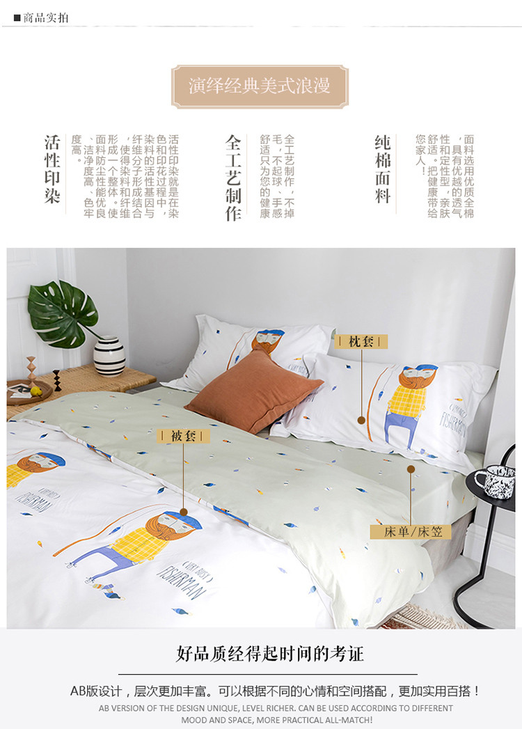 商品名称:窝米 2019全棉13372减龄卡通系列四件套床单款 海钓