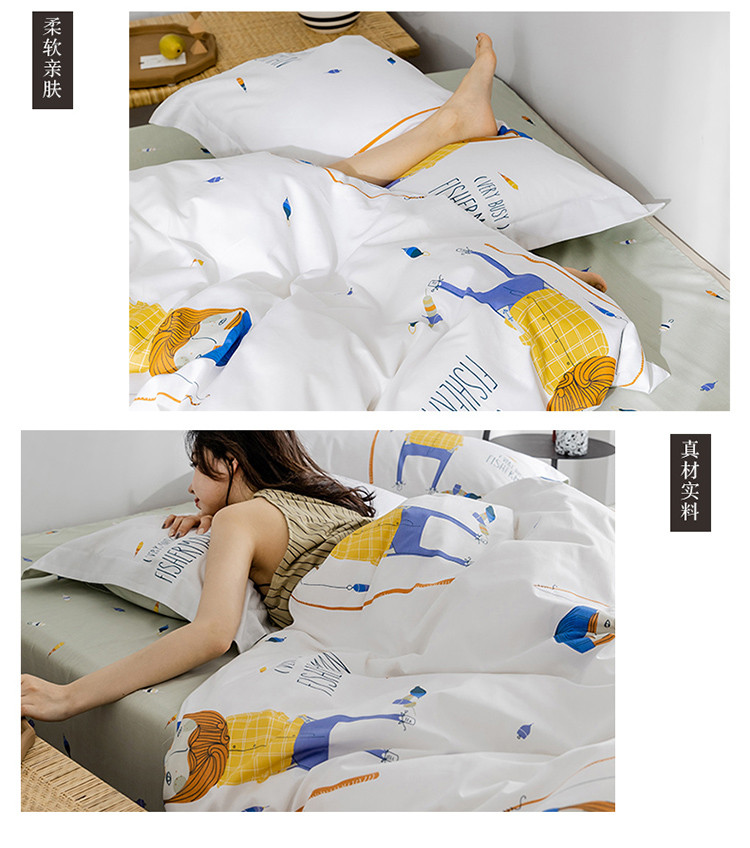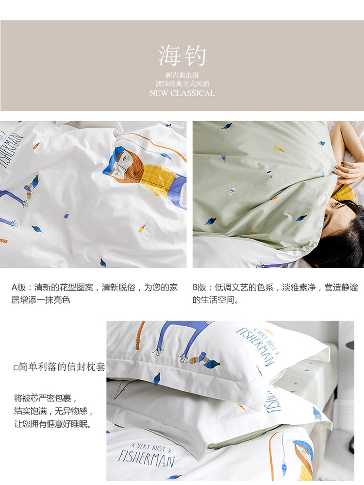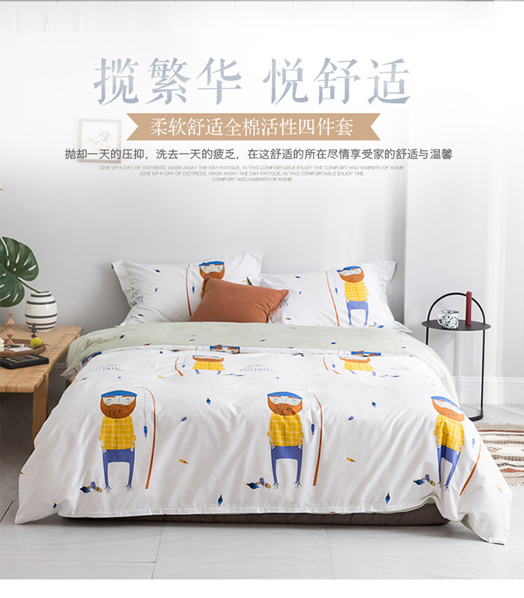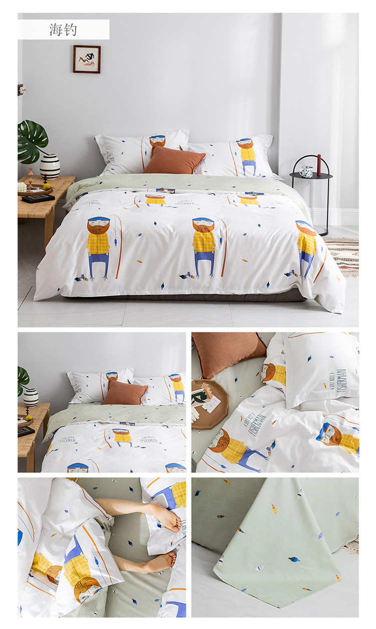 窝米 2019全棉13372减龄卡通系列四件套床单款 海钓