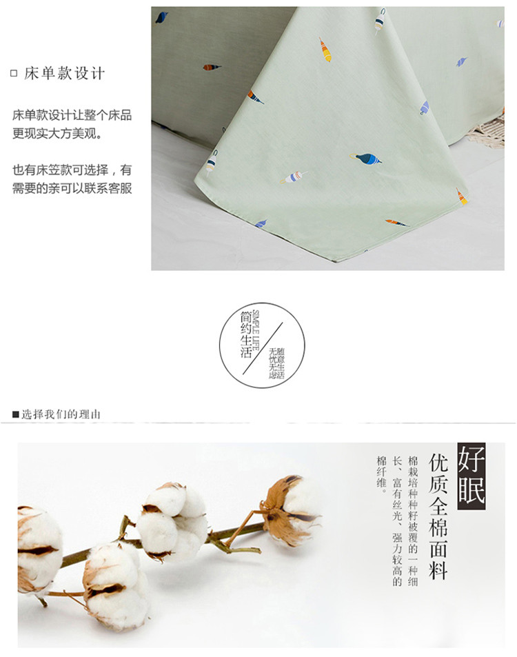 窝米 2020春夏新品全棉13372四件套小波西风系列小花花,小花花