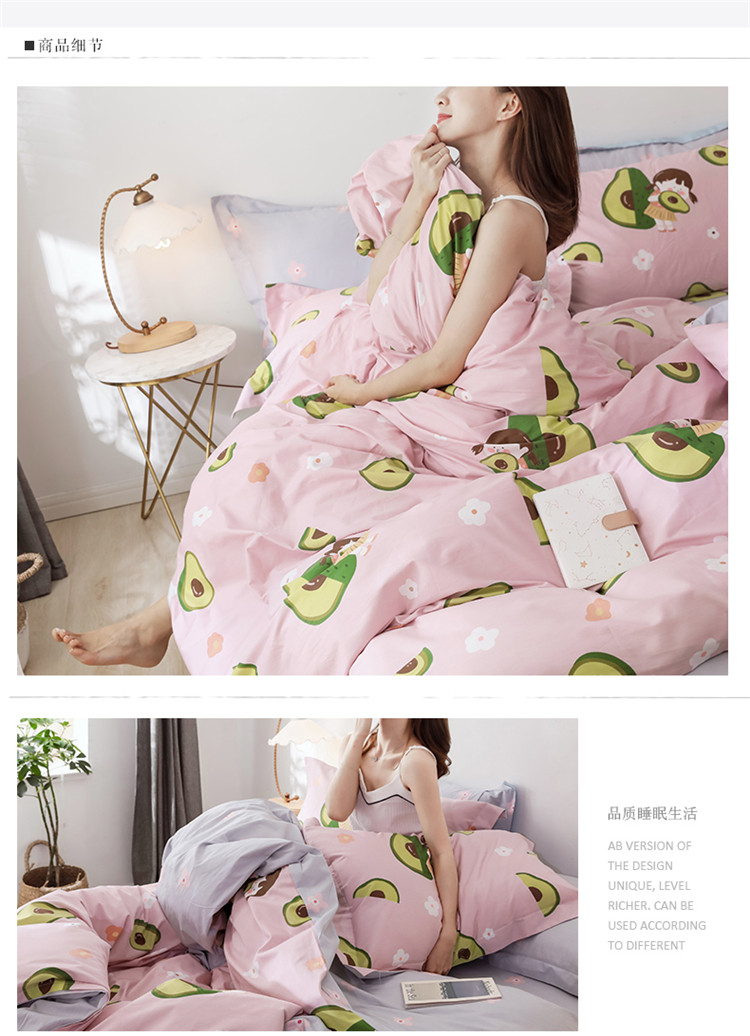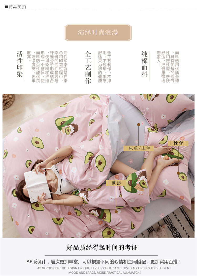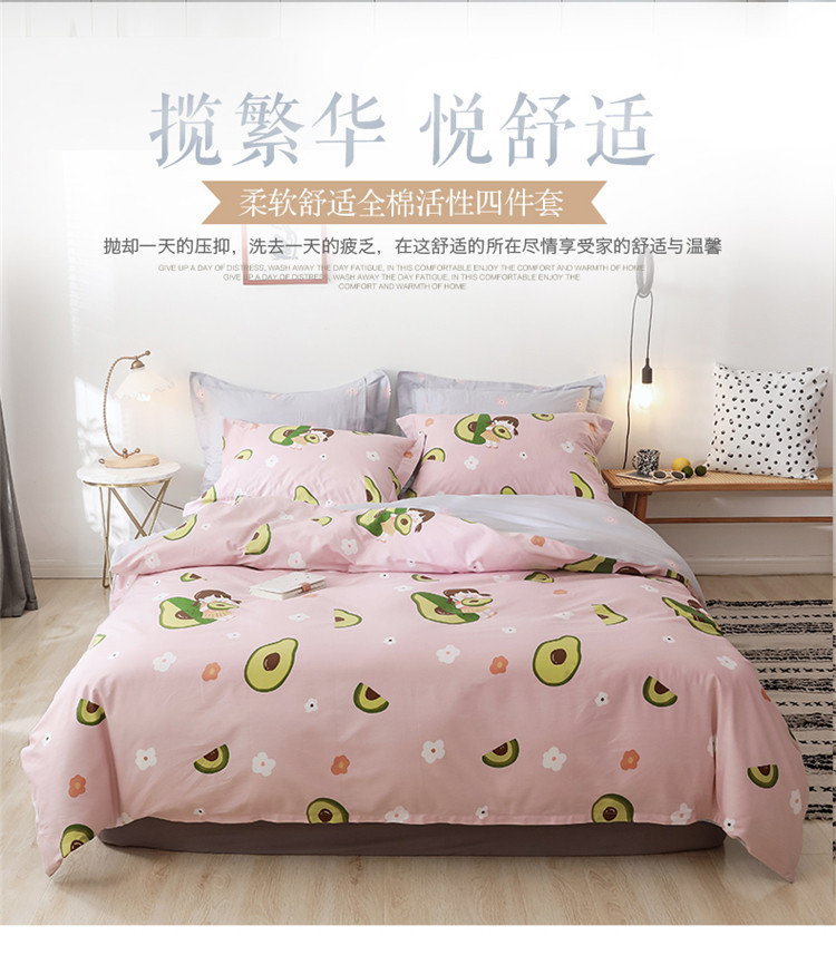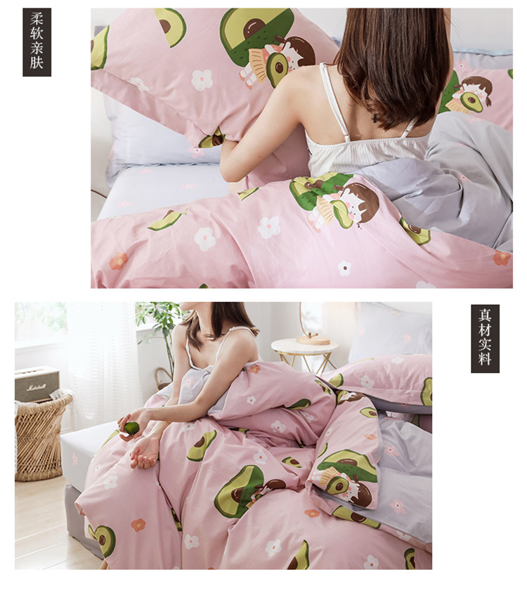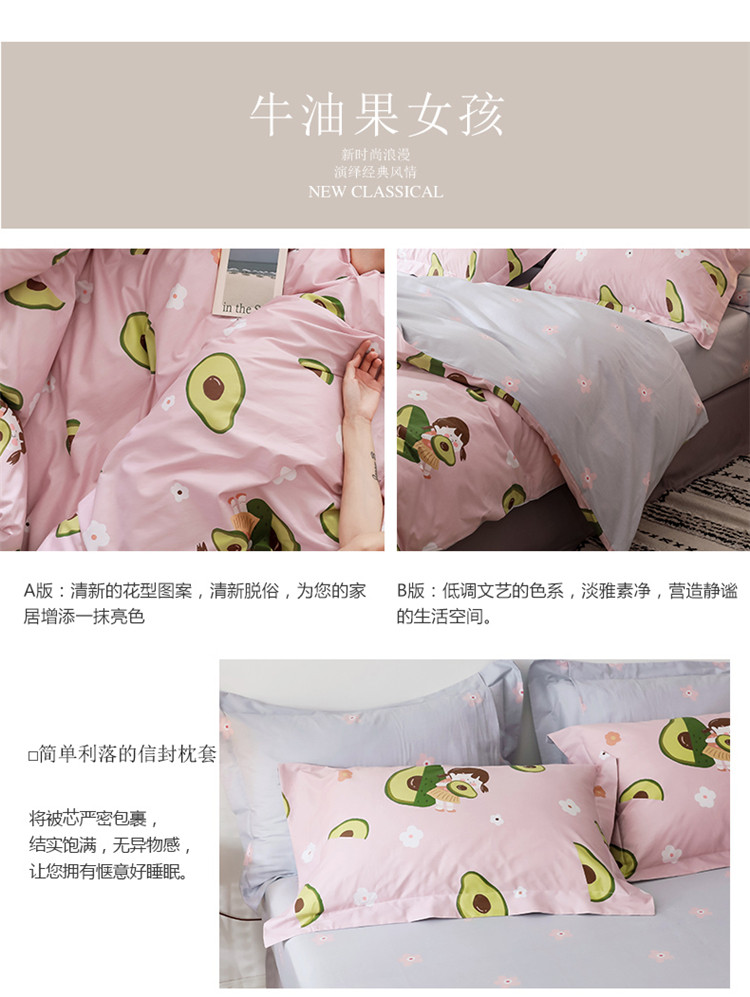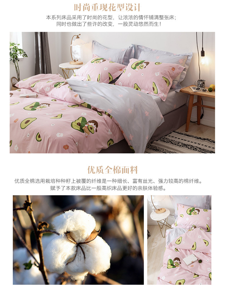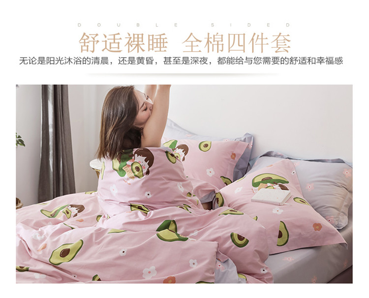 窝米2019全棉13372卡通花卉系列四件套床单款牛油果女孩
