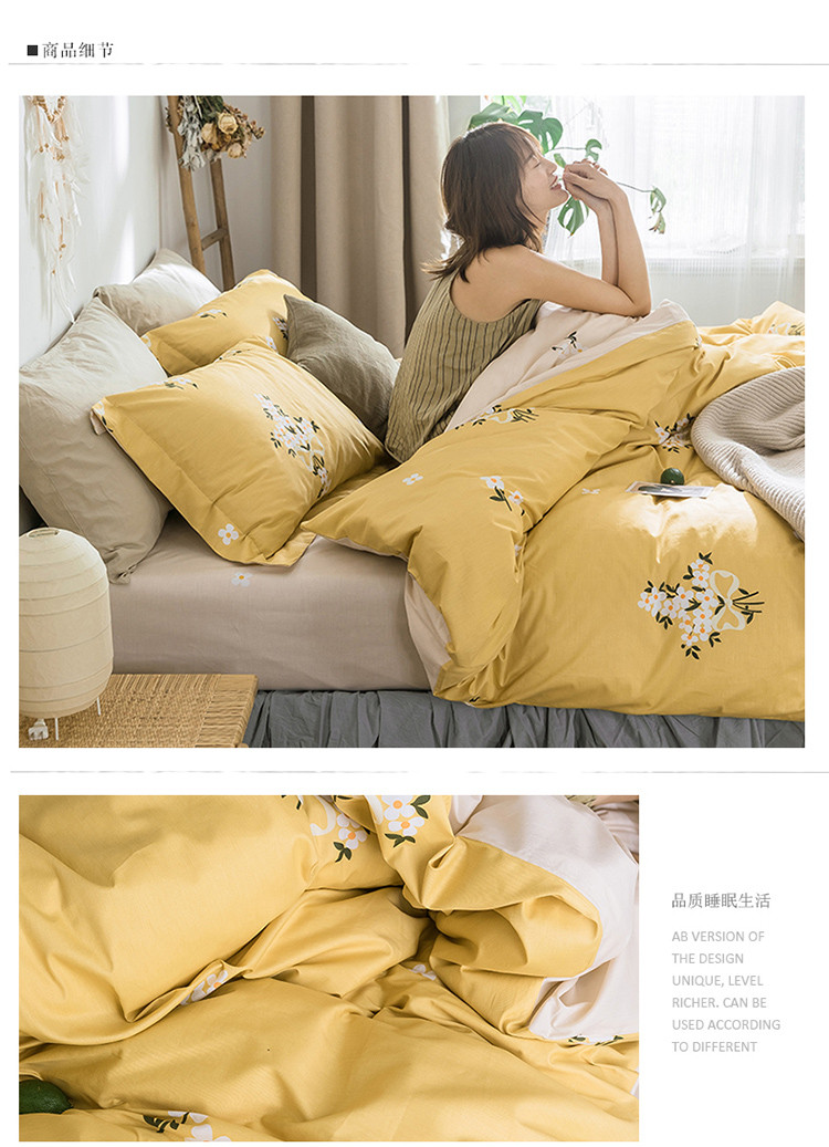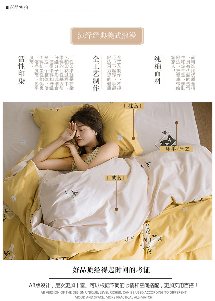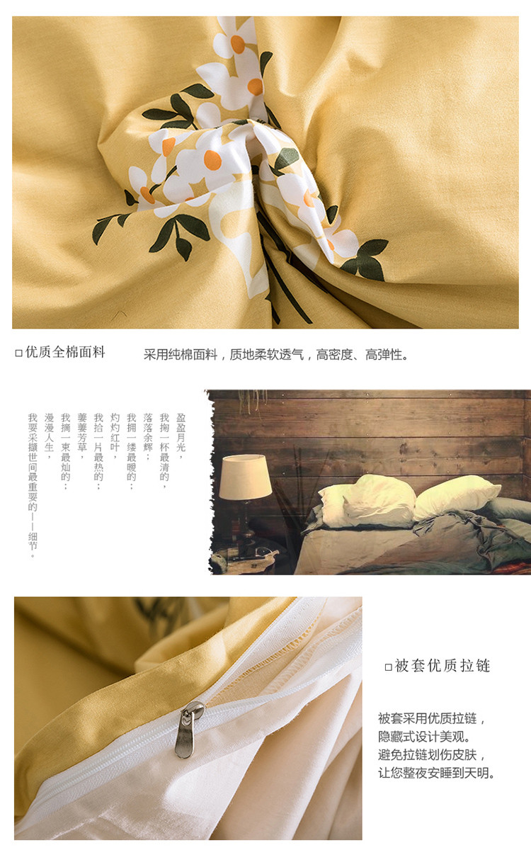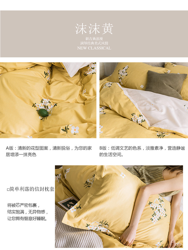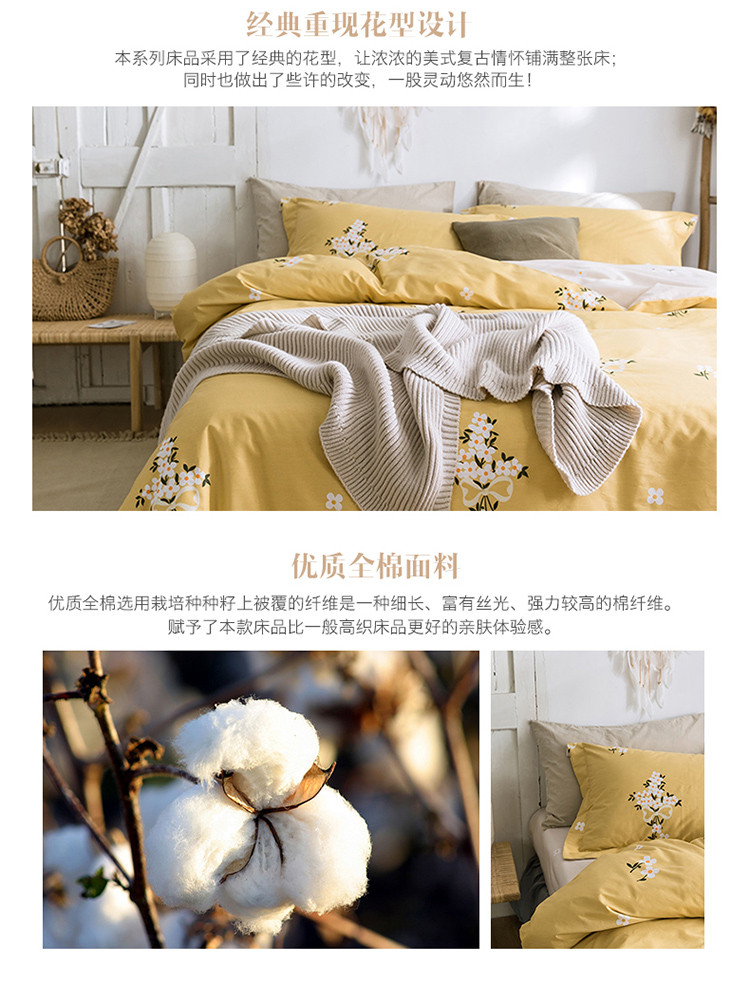 商品名称:窝米 2019全棉13372田园花卉系列四件套床单款 沫沫黄