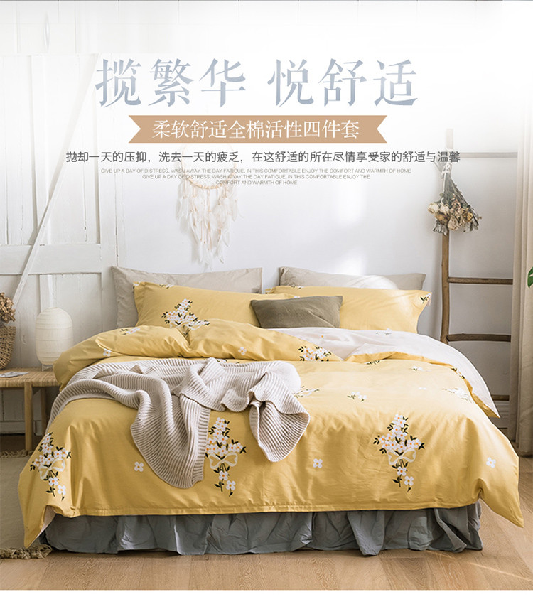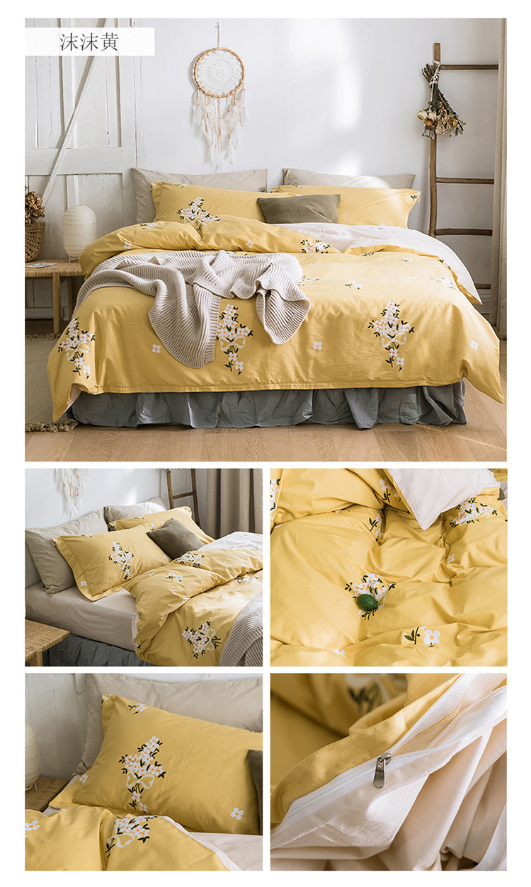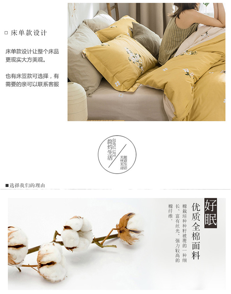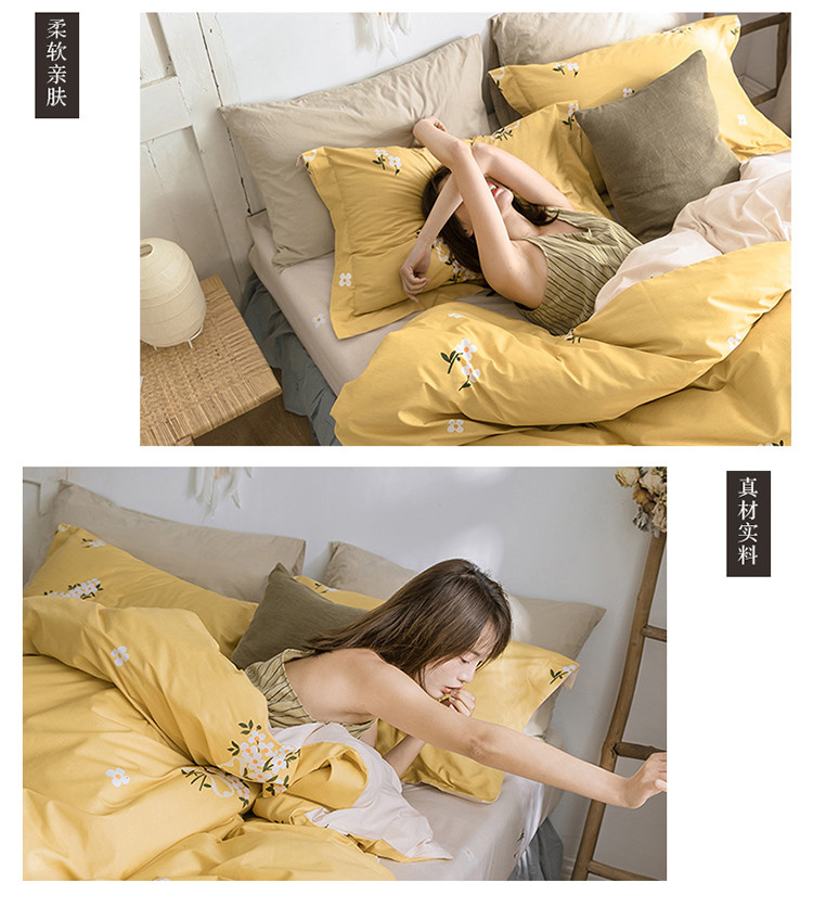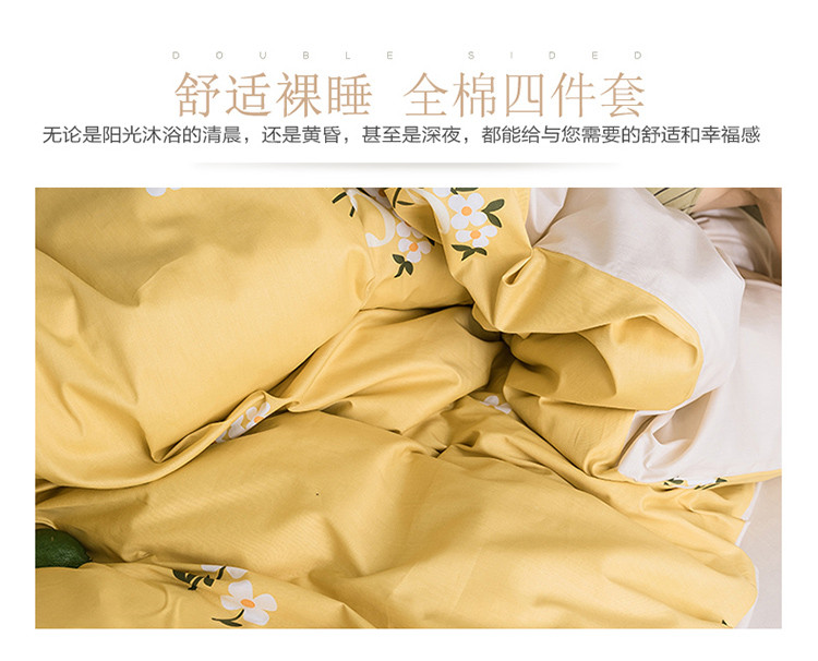 窝米 2019全棉13372田园花卉系列四件套床单款 沫沫黄