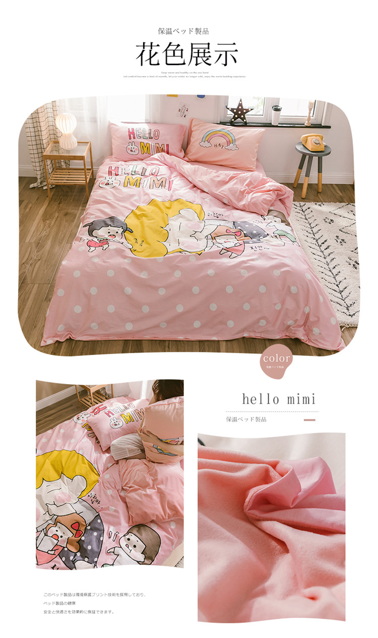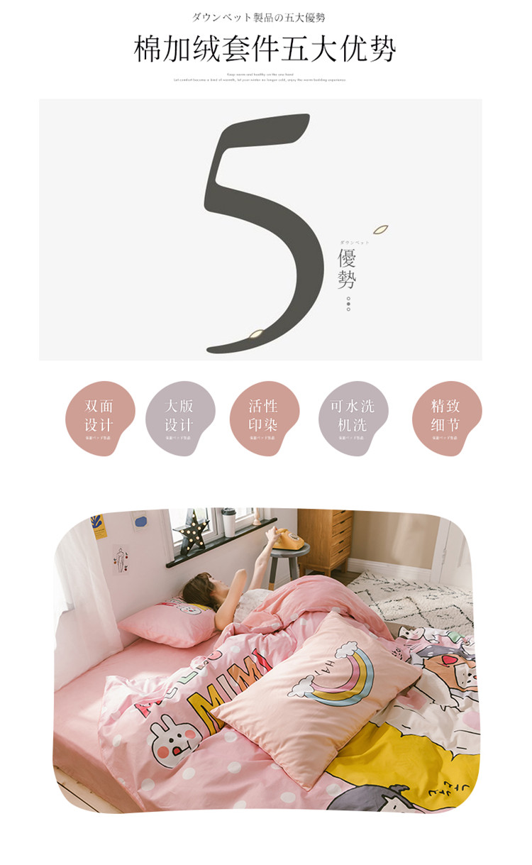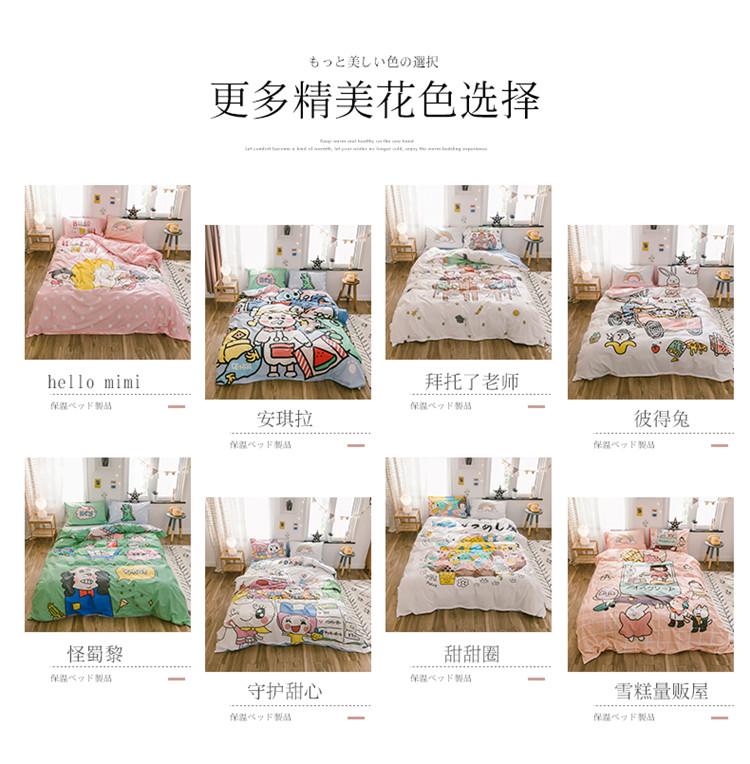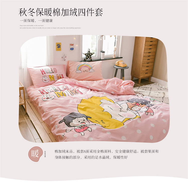 商品名称:窝米 大版二次元卡通棉加绒四件套床单款hellomimi