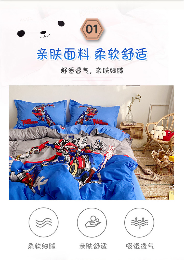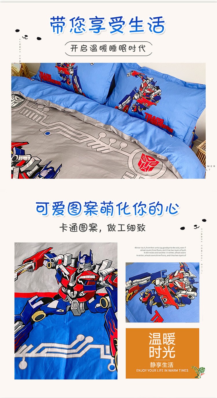 金爱家家纺 2021新款童梦系列大版卡通全棉四件套 擎天柱