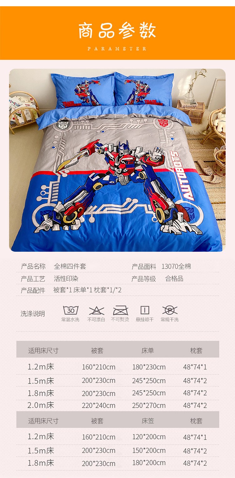 商品名称:金爱家家纺 2021新款童梦系列大版卡通全棉四件套 擎天柱
