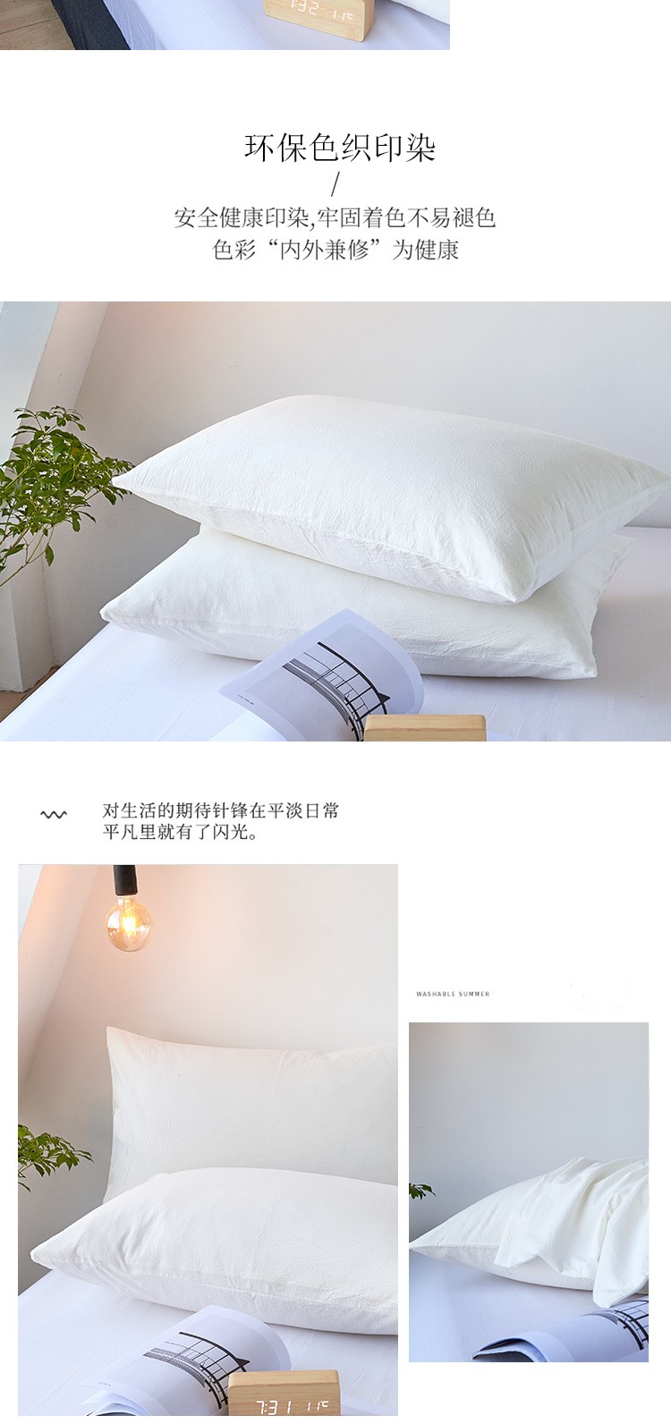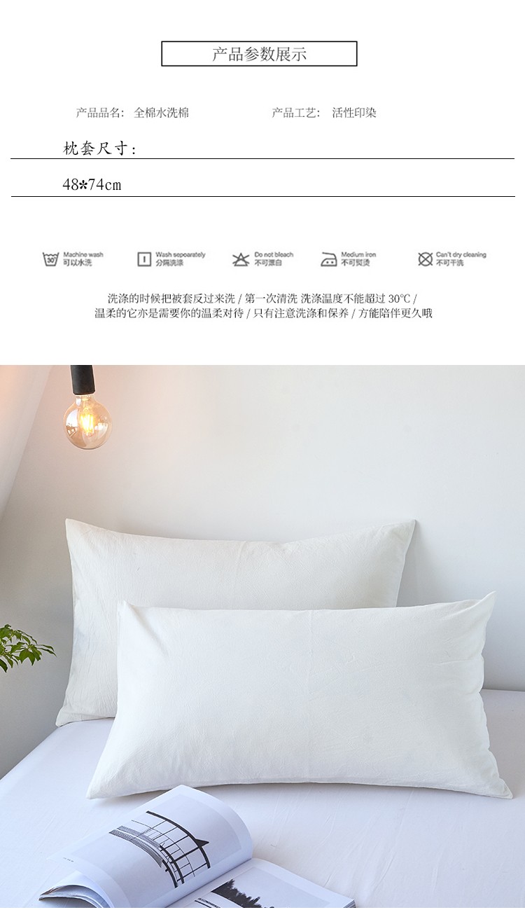 商品名称:简约纯色全棉水洗棉枕套单件纯棉床罩单人枕巾枕头套