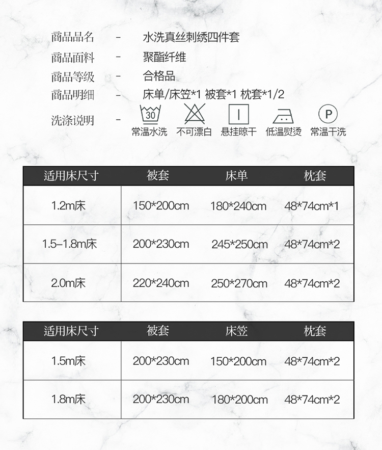 (总)骏腾 2023水洗冰丝刺绣四件套水洗真丝三件套天丝床笠,本白,豆沙,粉色,格林蓝,柠檬黄,水墨灰,雾霾蓝,西柚橙