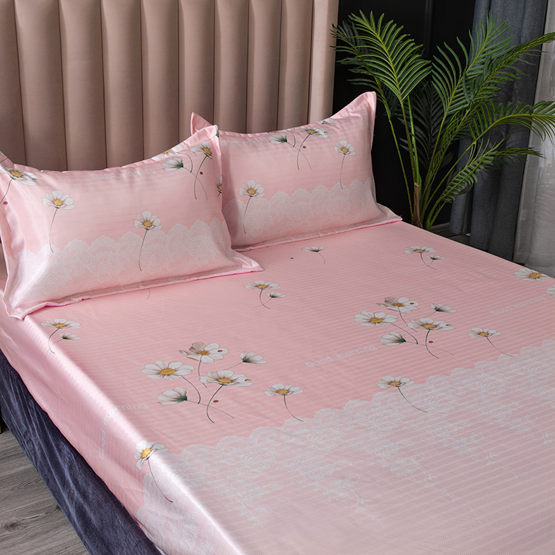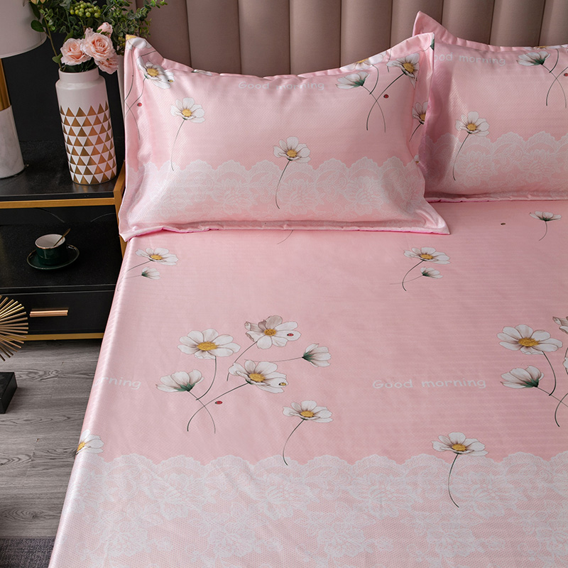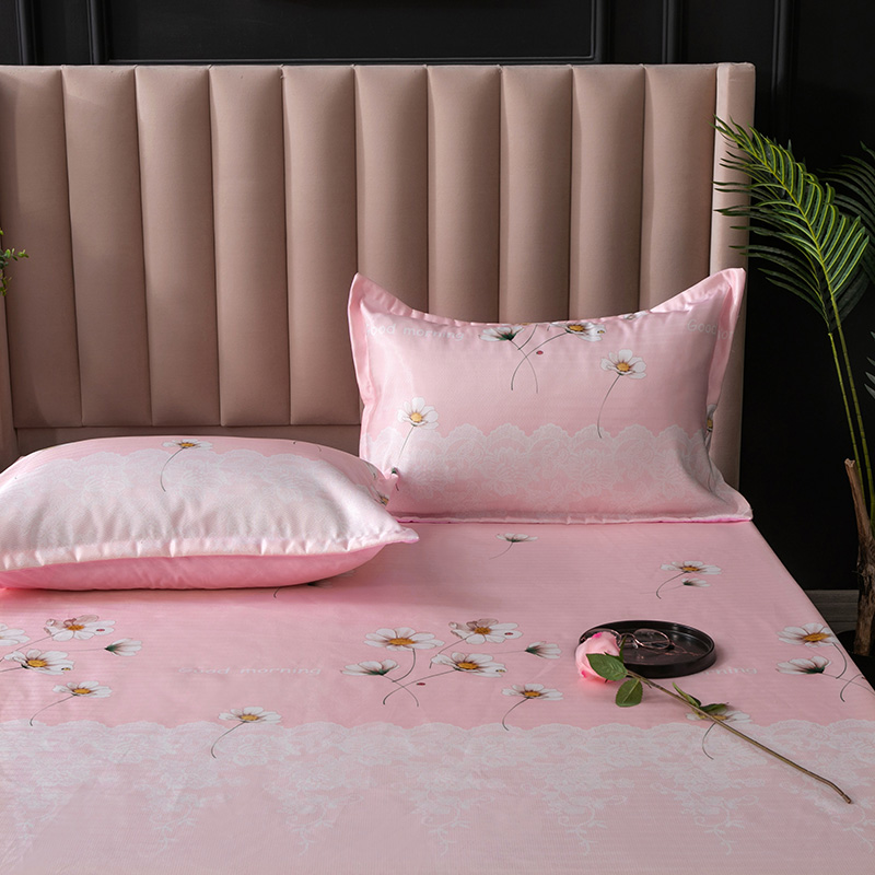 棉生活 春夏新品600D冰丝软凉席三件套床笠款小清新-粉