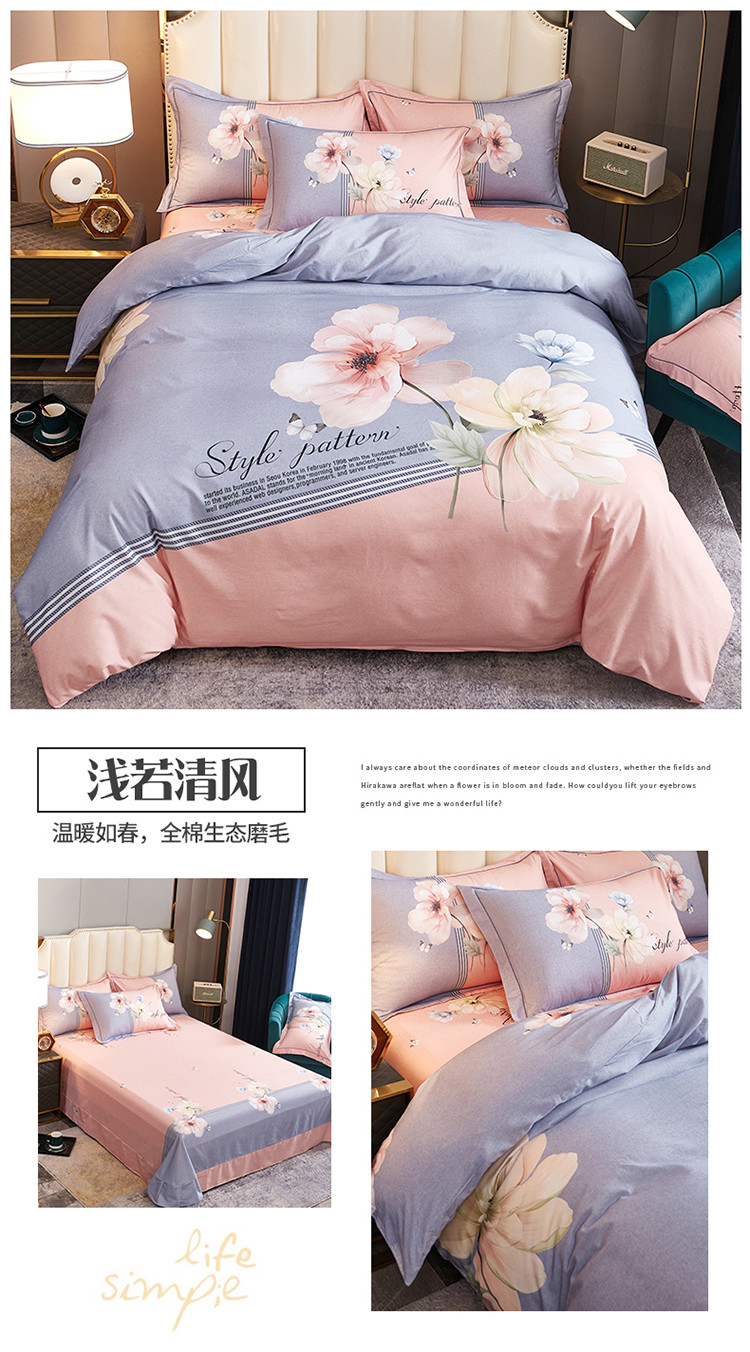 雲归梦 2020新款全棉生态磨毛大版四件套 浅若清风