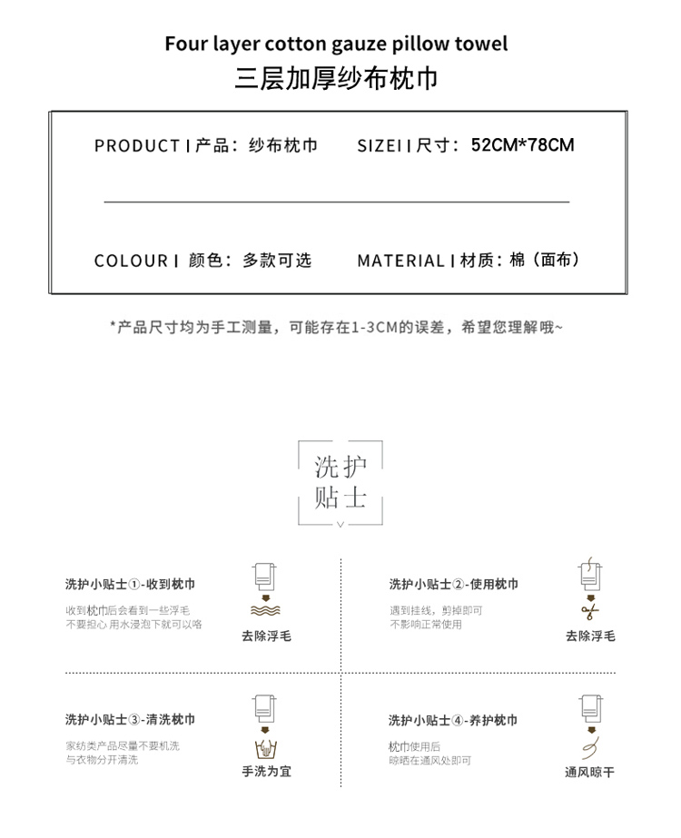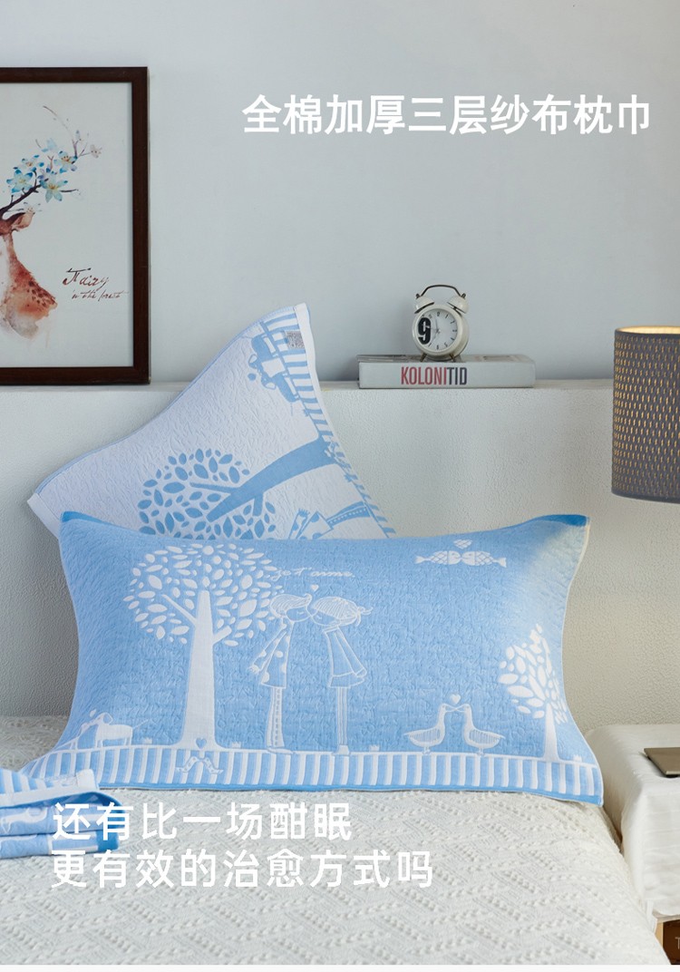 • 91家纺网 家纺一手货源 找家纺 朴尔 2020新款全棉加厚三层纱布枕巾 如梦兰