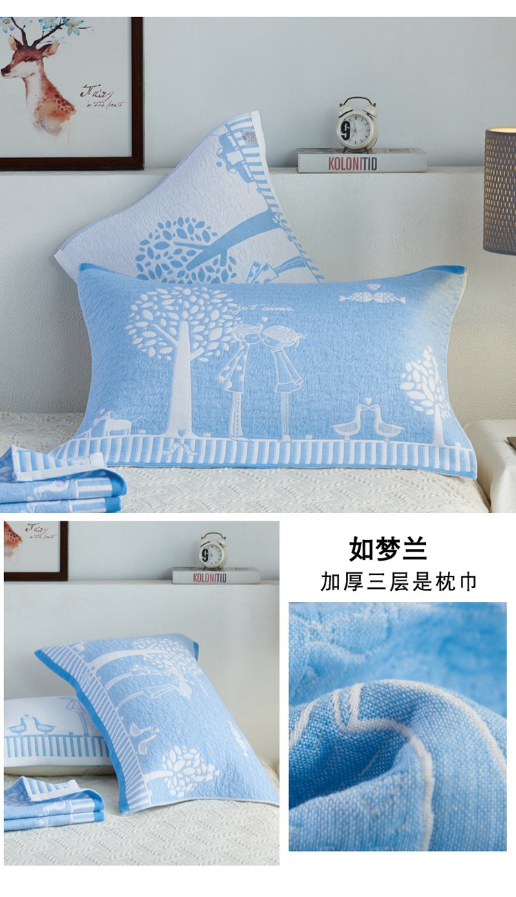 朴尔 2020新款全棉加厚三层纱布枕巾 如梦兰