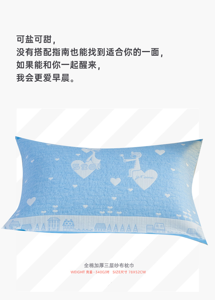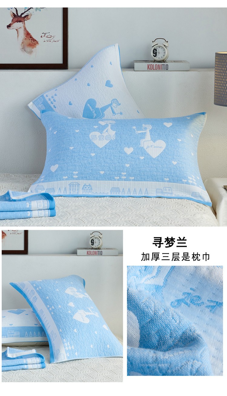 • 91家纺网 家纺一手货源 找家纺 朴尔 2020新款全棉加厚三层纱布枕巾 寻梦兰