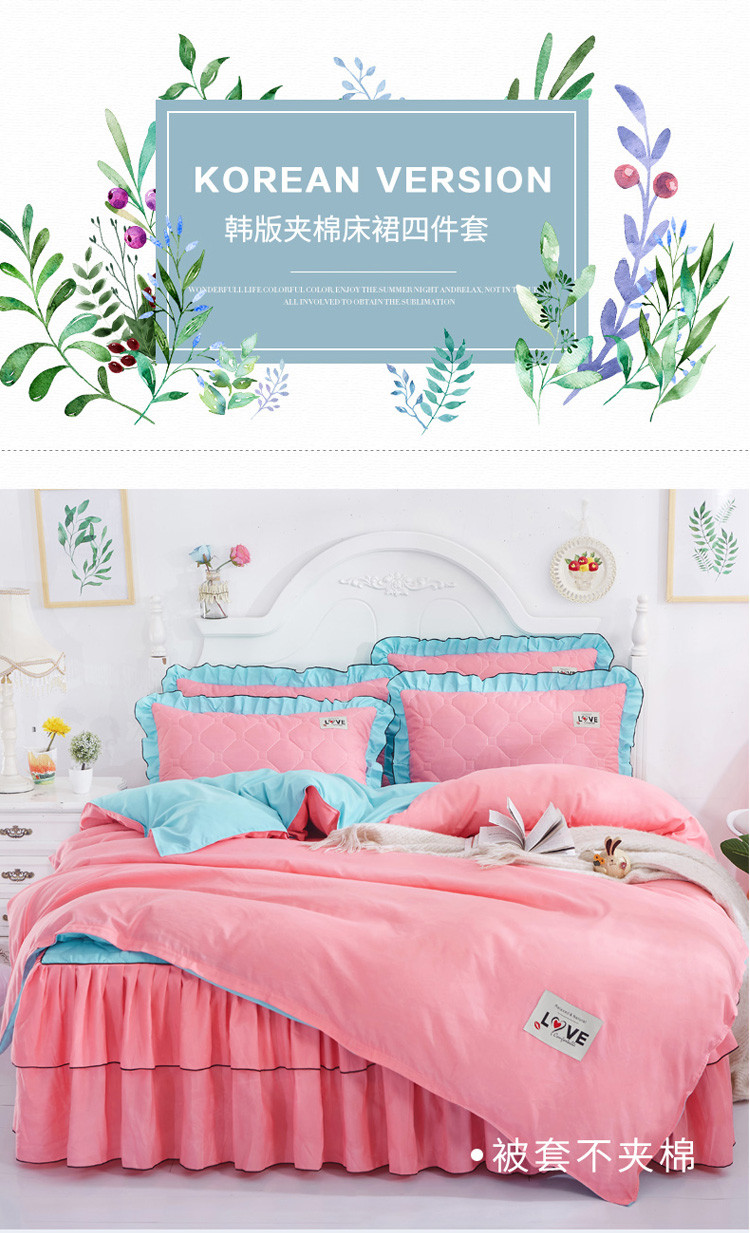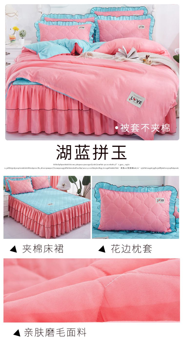 商品名称:艾裙海 2025新款床裙款半夹棉四件套 湖蓝拼玉