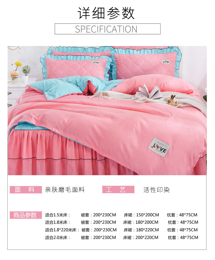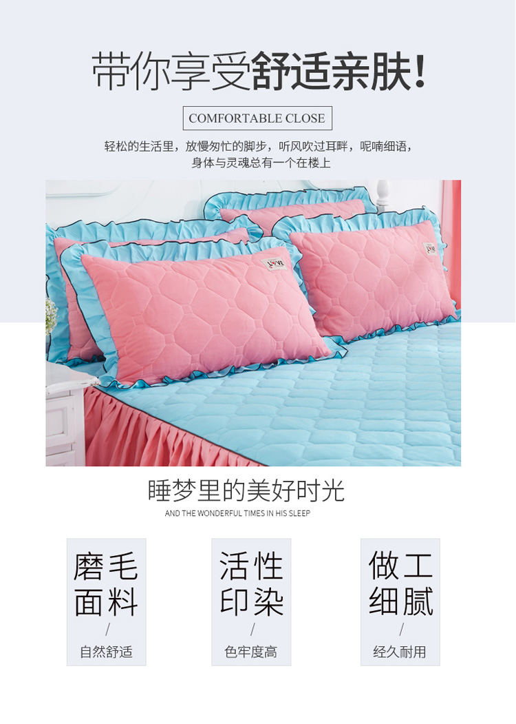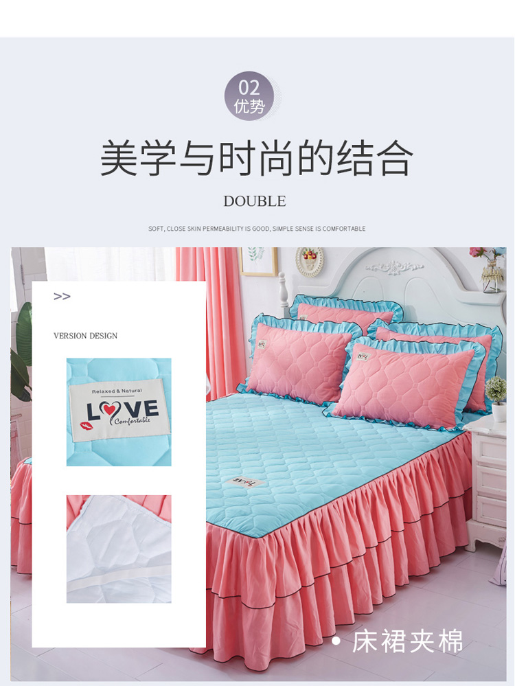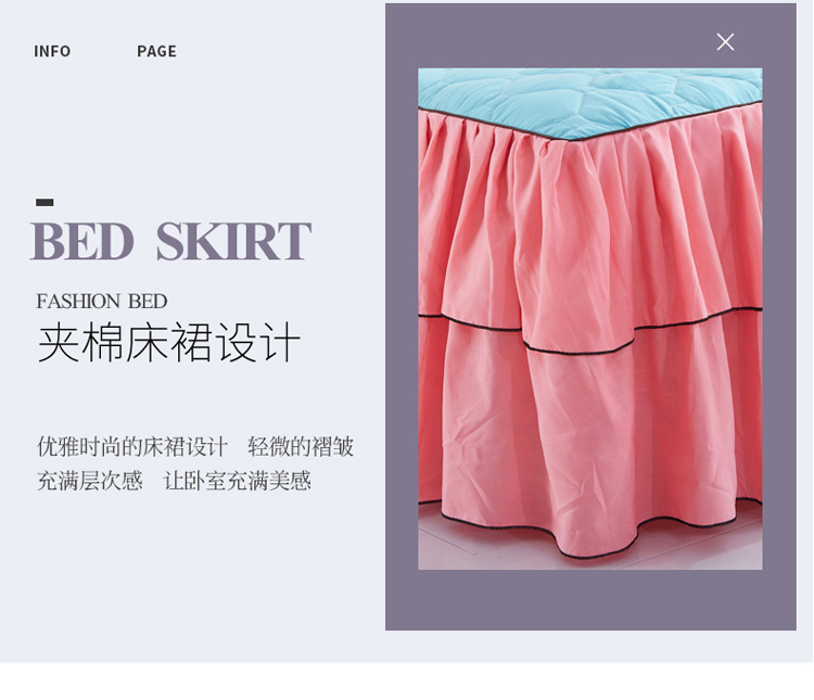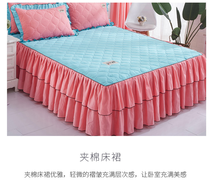 (总)艾裙海 2025新款90克磨毛夹棉绗缝床裙,粉色,大红色,米白色,深灰色,紫色,藏青色,宝蓝色,浅灰色,粉玉色,豆沙红