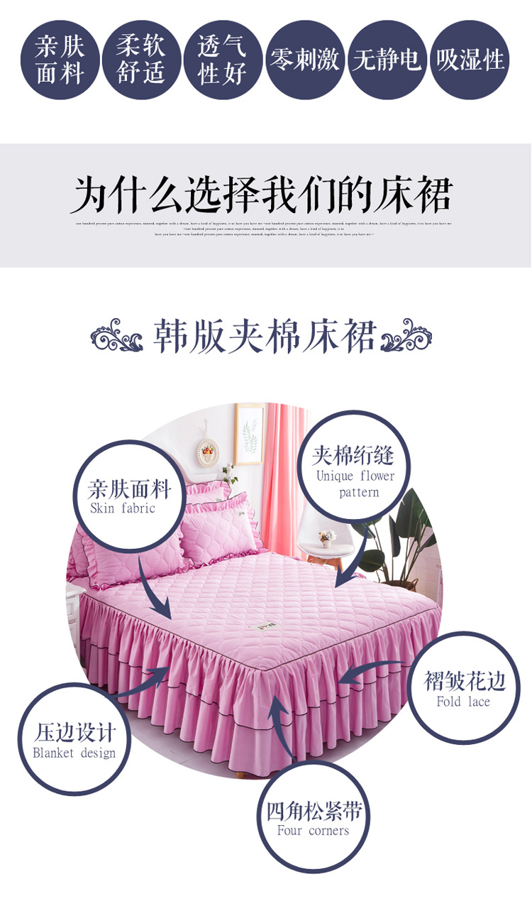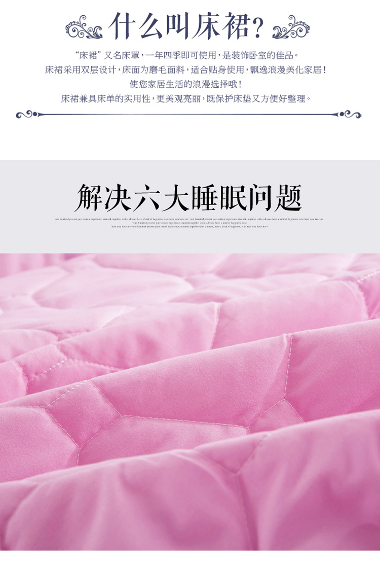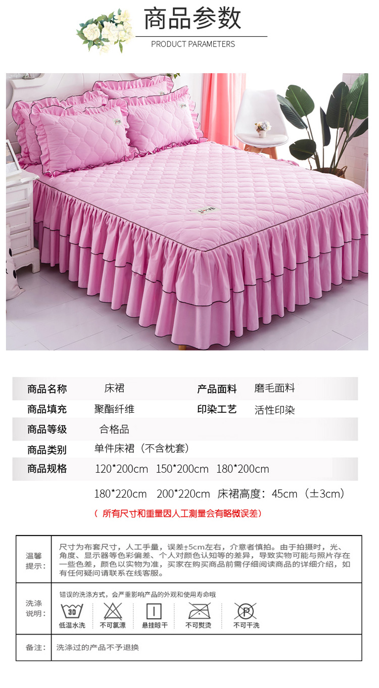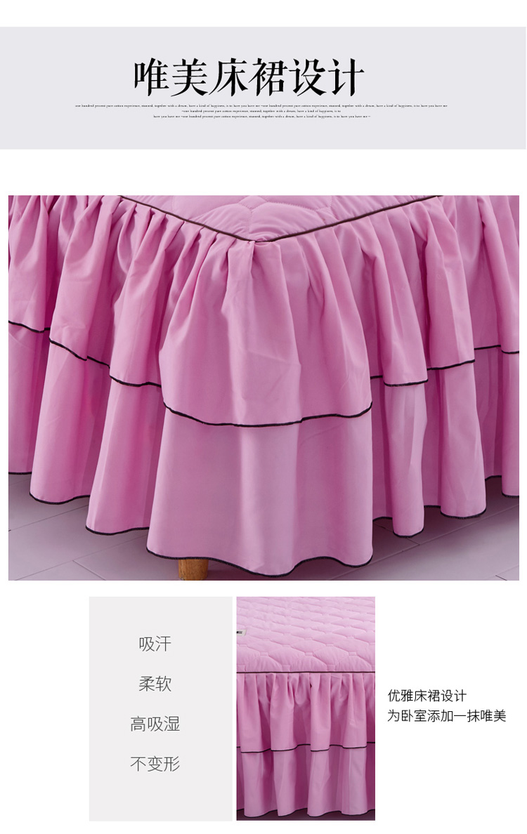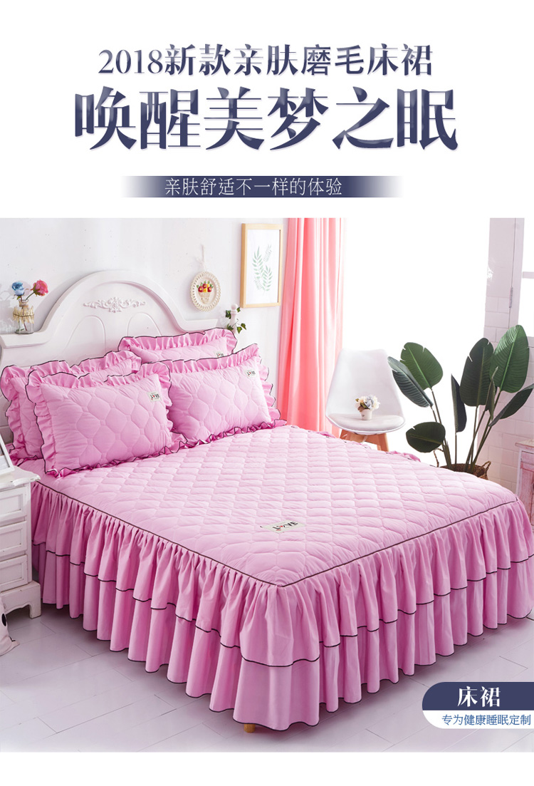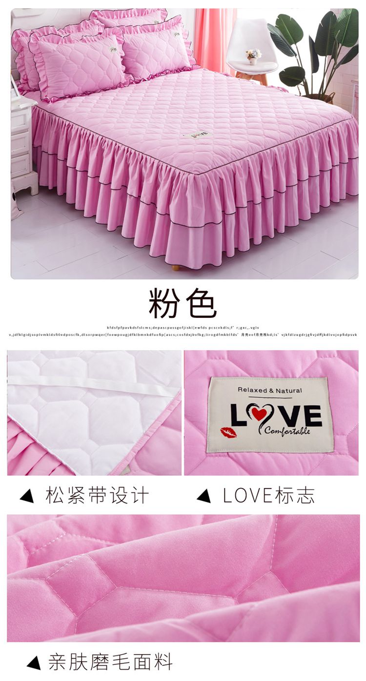 (总)艾裙海 2025新款90克磨毛夹棉绗缝床裙,粉色,大红色,米白色,深灰色,紫色,藏青色,宝蓝色,浅灰色,粉玉色,豆沙红