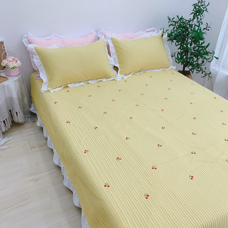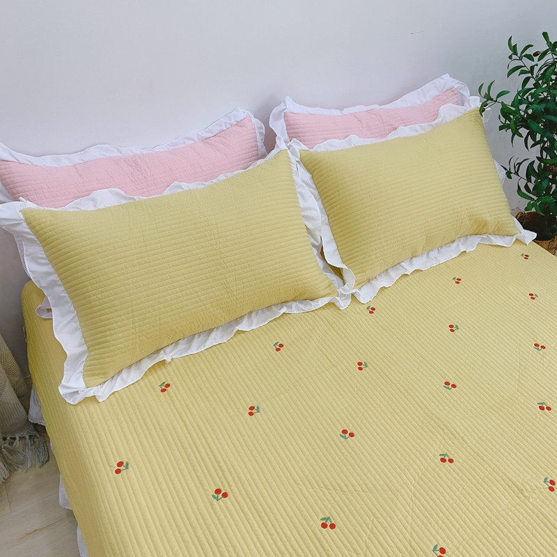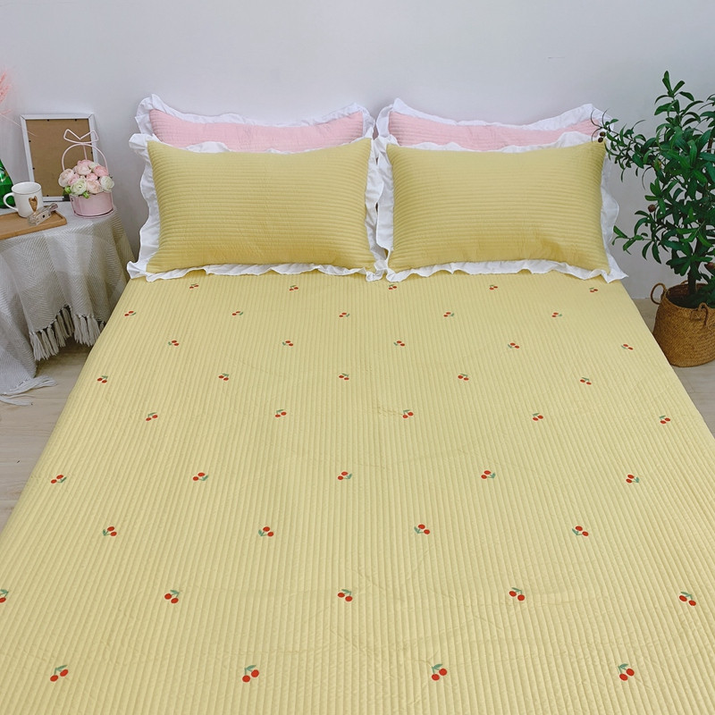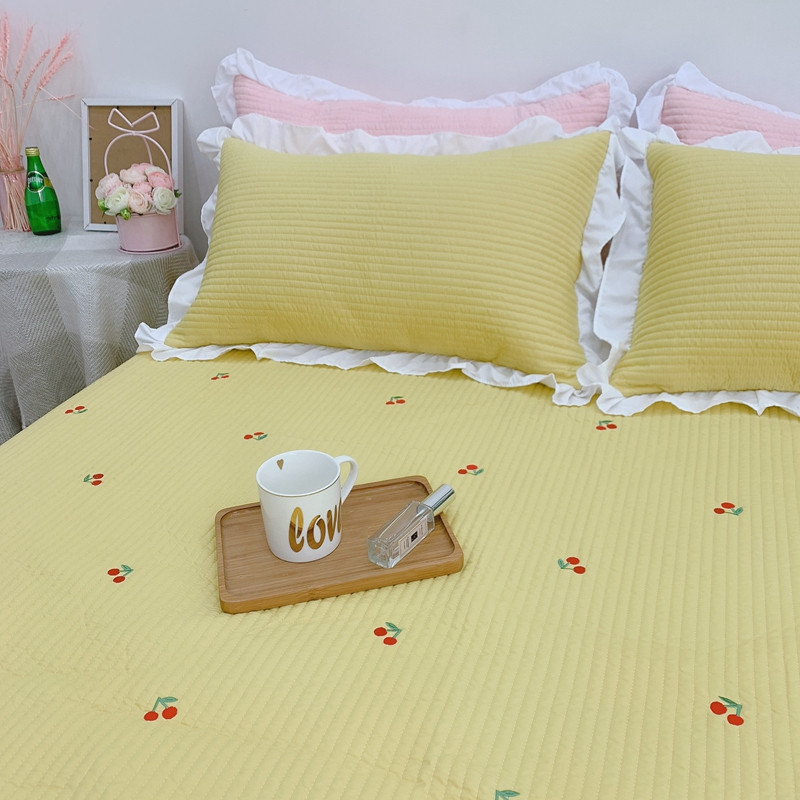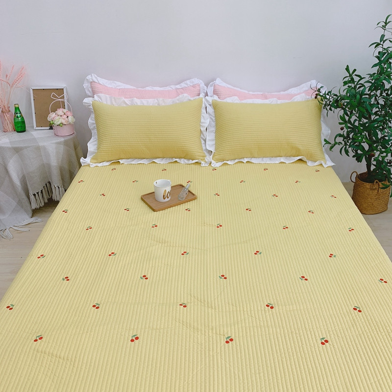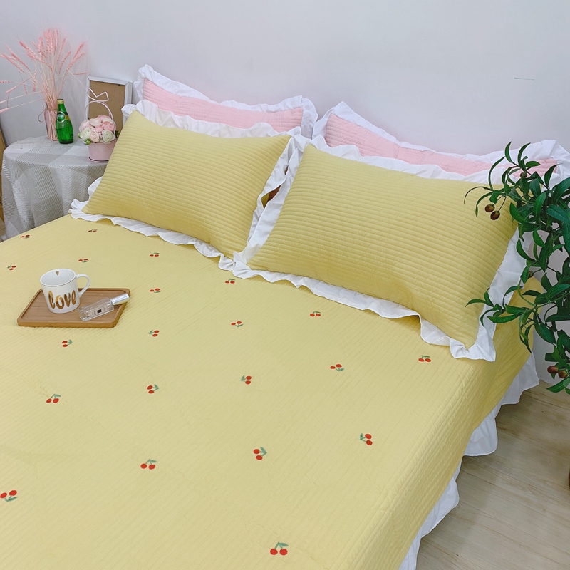 商品名称:漫调 2022新款ins风韩版床盖三件套 樱桃姜黄