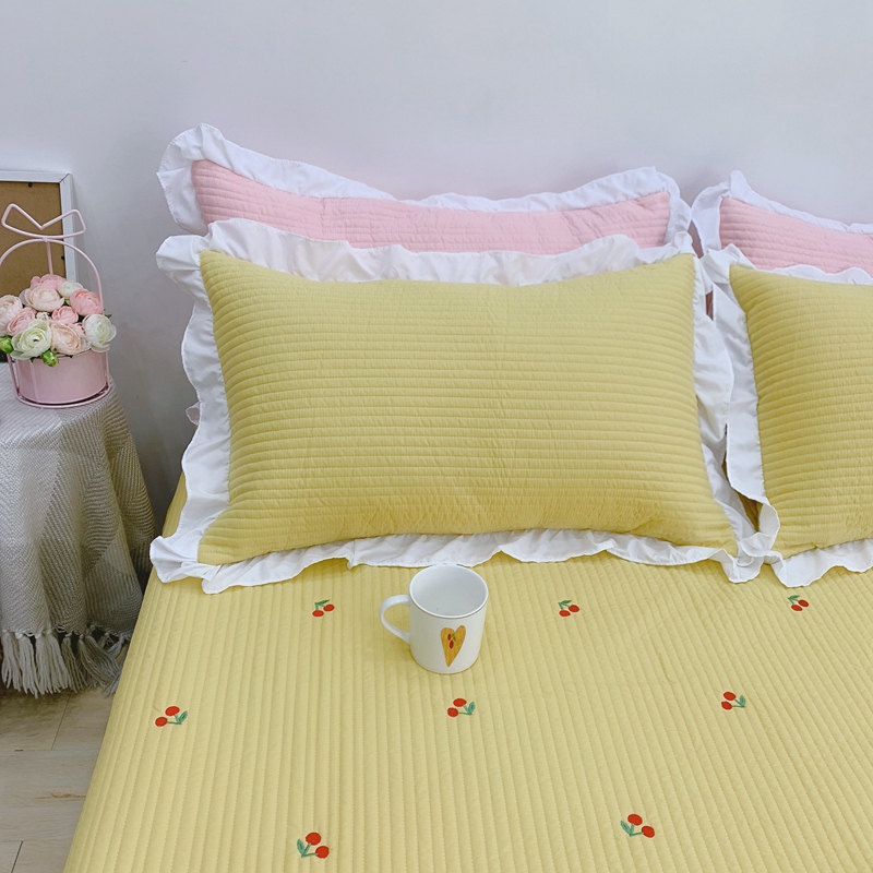 漫调 2022新款ins风韩版床盖三件套 樱桃姜黄