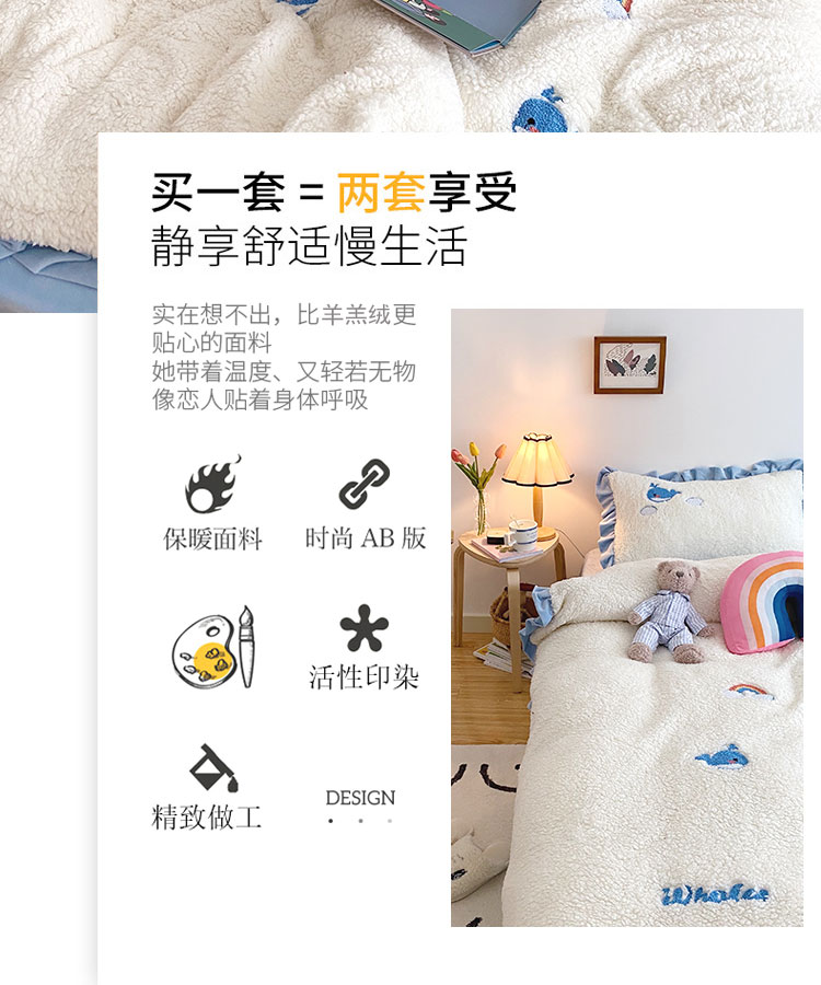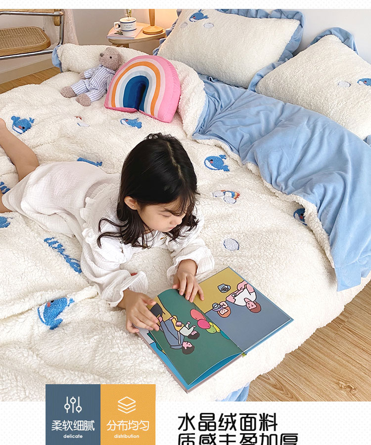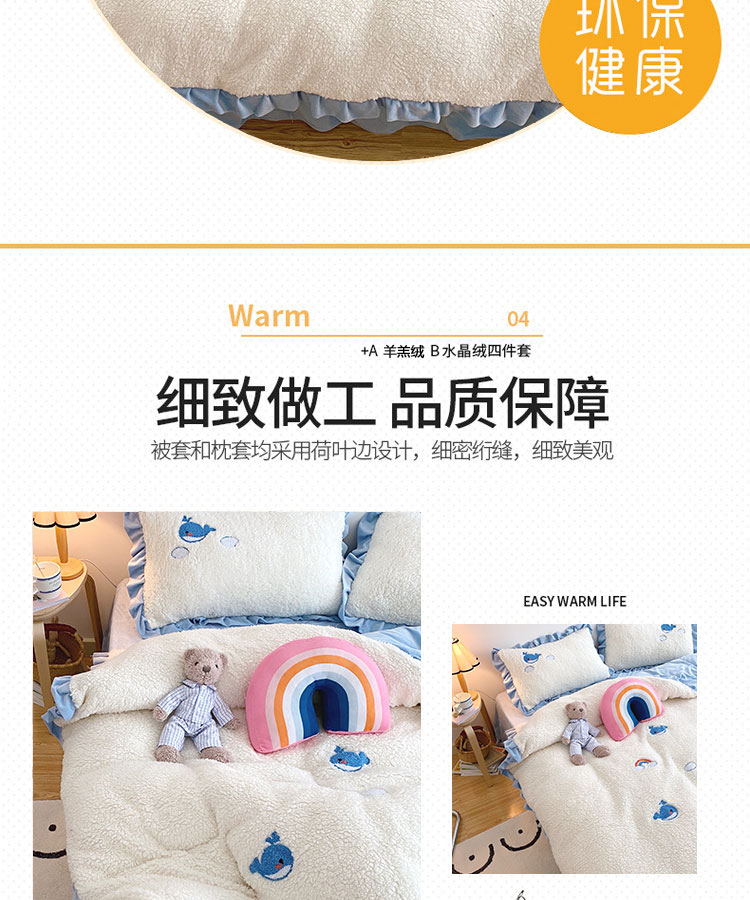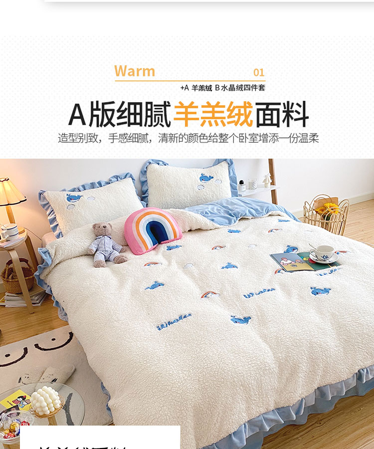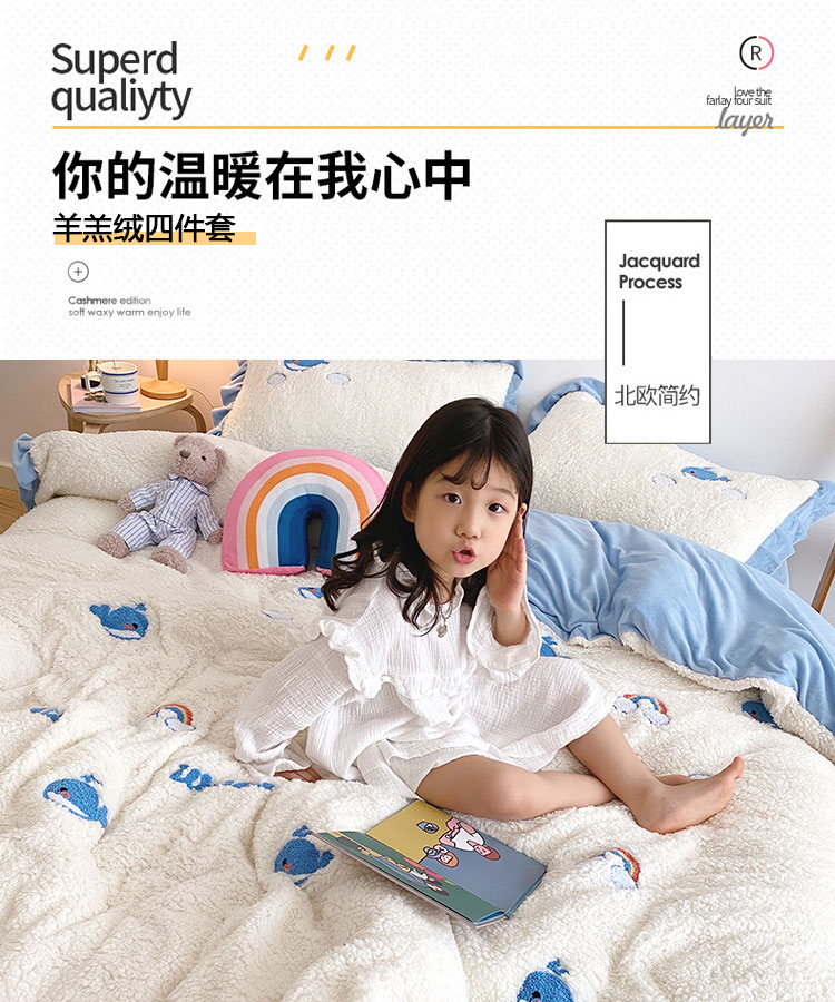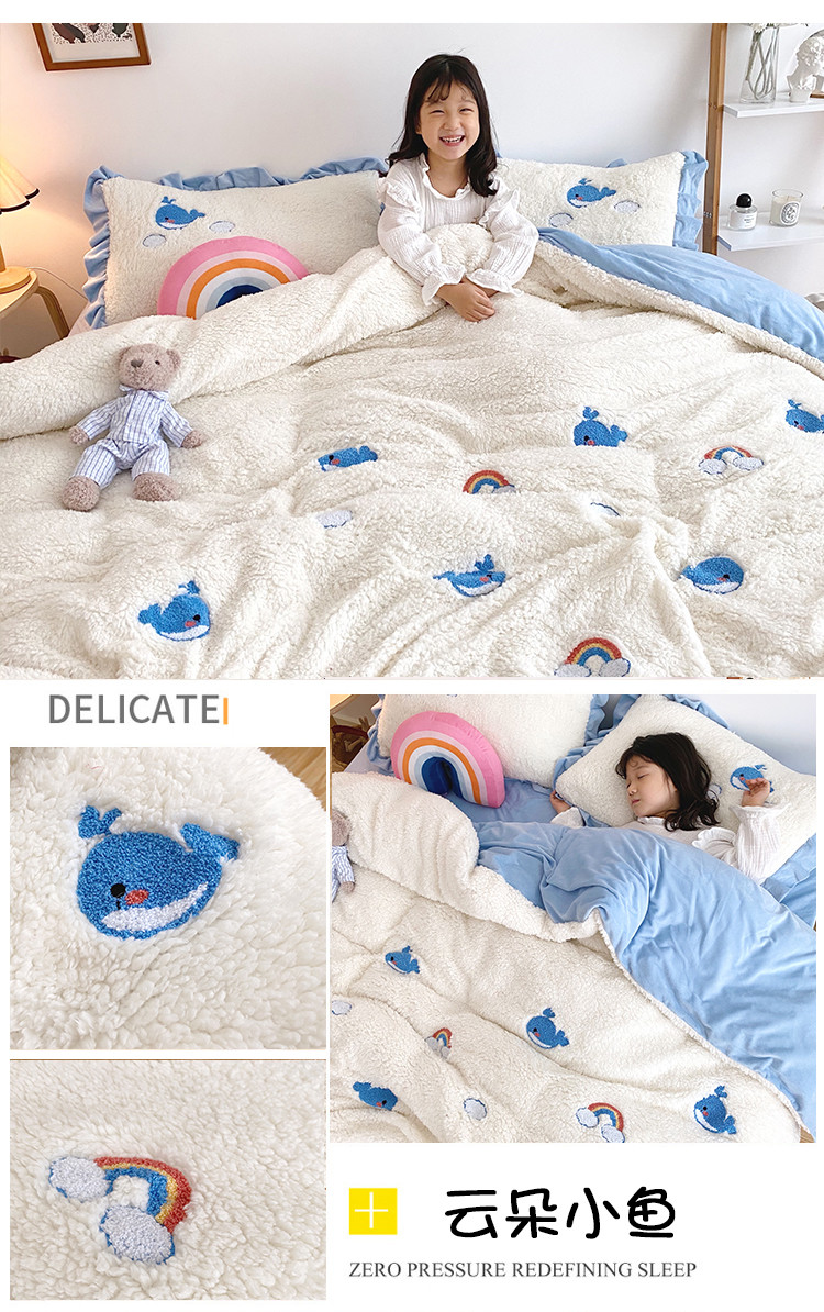 商品名称:川悦生活 2020新款羊羔绒毛巾绣四件套 云朵小鱼