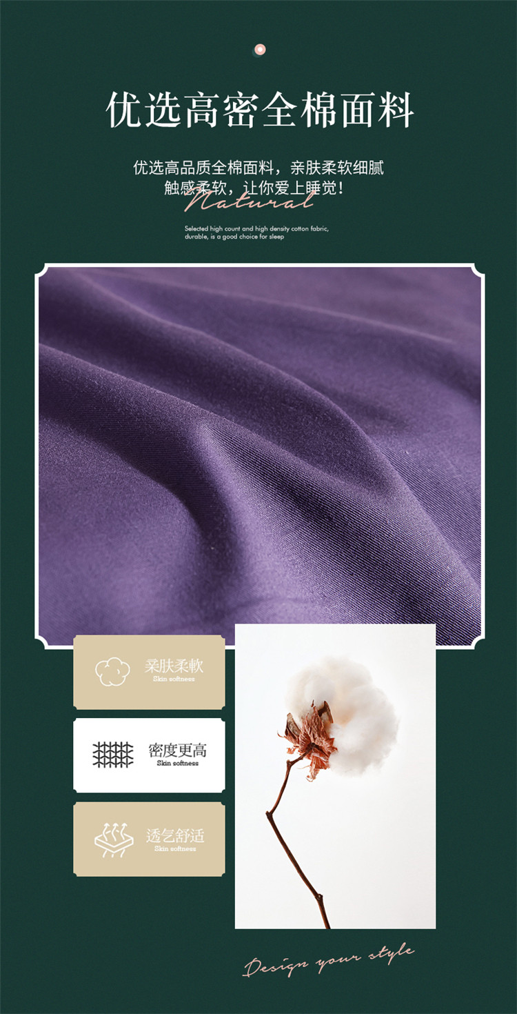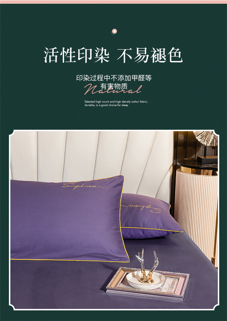 (总)拼社家纺活性纯色纯棉刺绣全棉磨毛四件套-逸系列,丹砂紫,帝王灰,豆沙粉,翡翠绿,海星蓝,宝石红,千黛紫,松石绿,香槟黄,玉颜粉,至尊灰