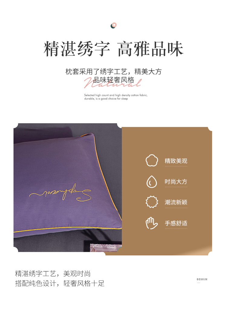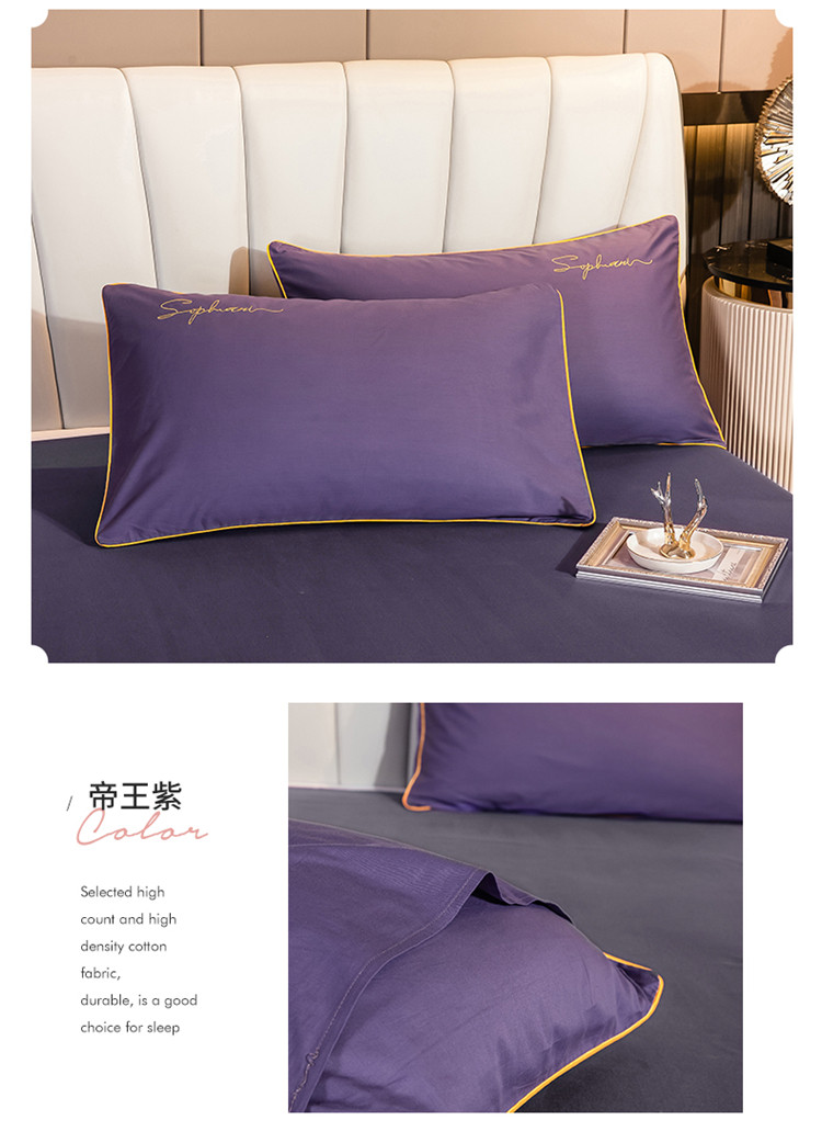 商品名称:拼社 40s贡缎长绒棉字母款单枕套一对 帝王紫