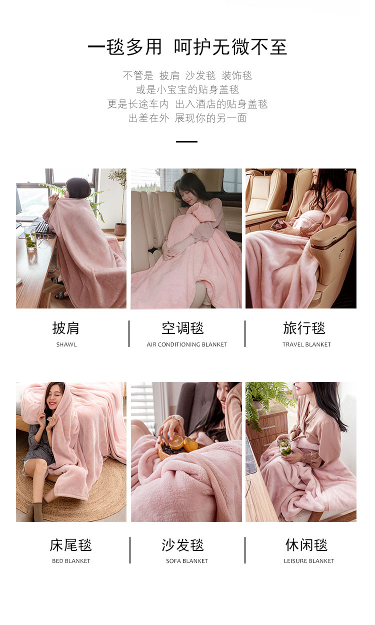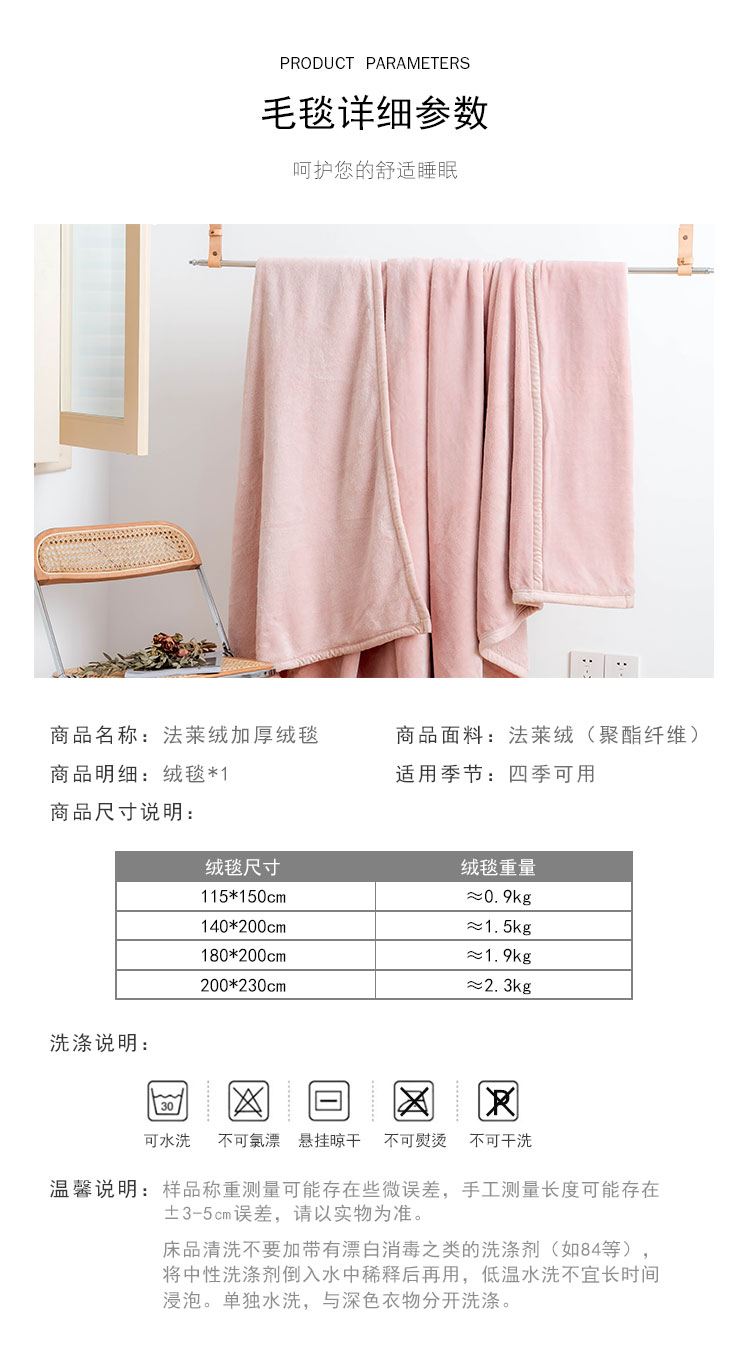 商品名称:寐眠 2020新款法莱绒毛毯 粉色