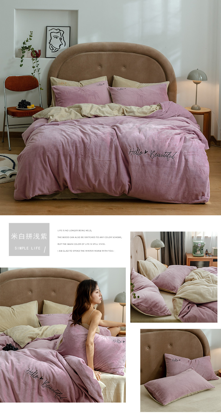 (总)寐眠 2025新款A类立体雕花牛奶绒四件套-系列一,粉暖舒然,花绒雅梦,暖咖轻奢,浅紫暖奢