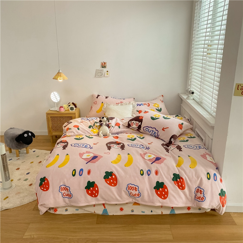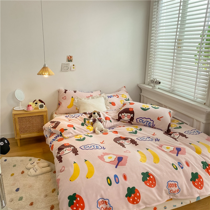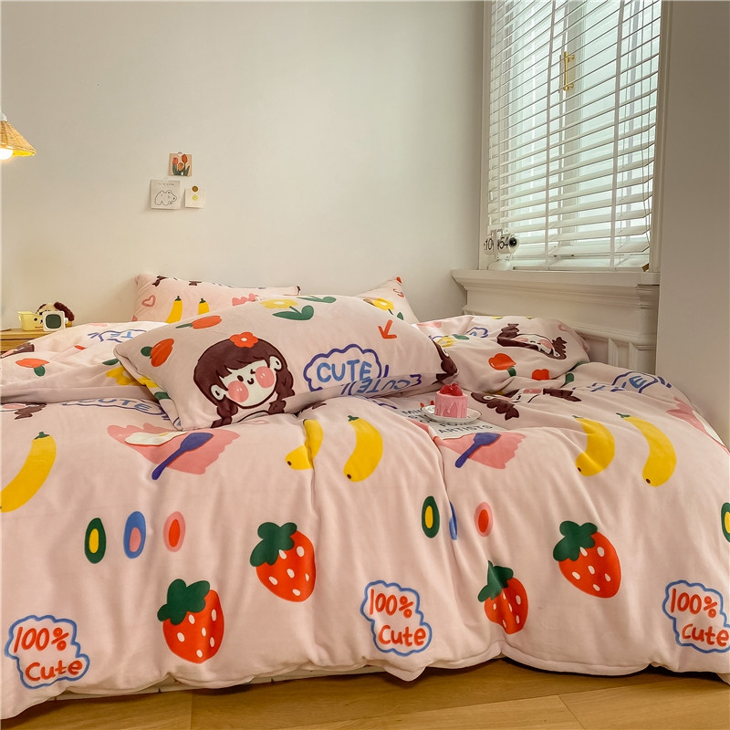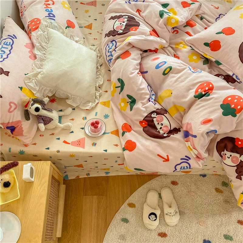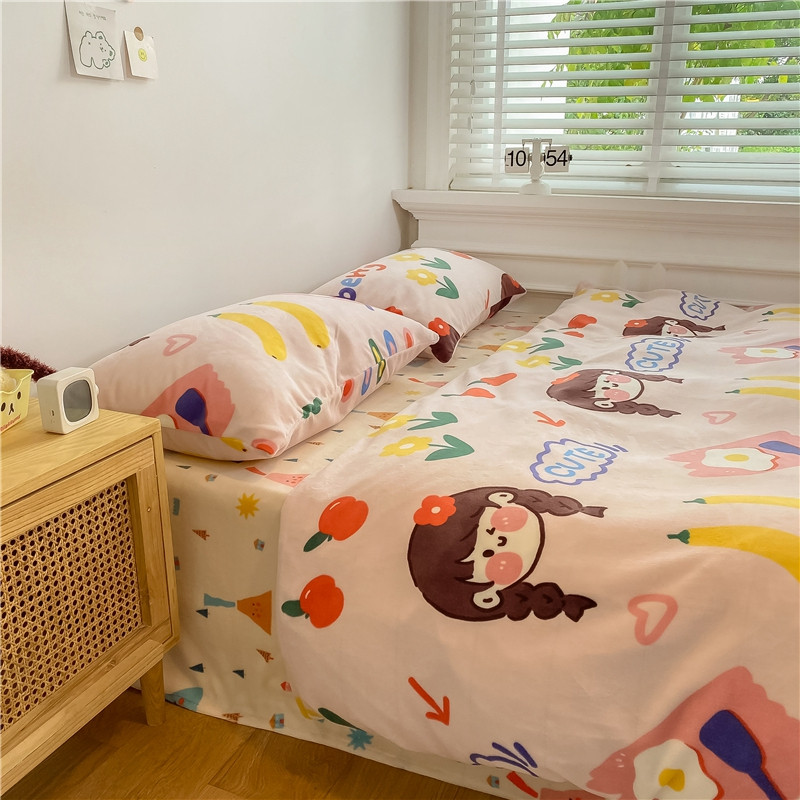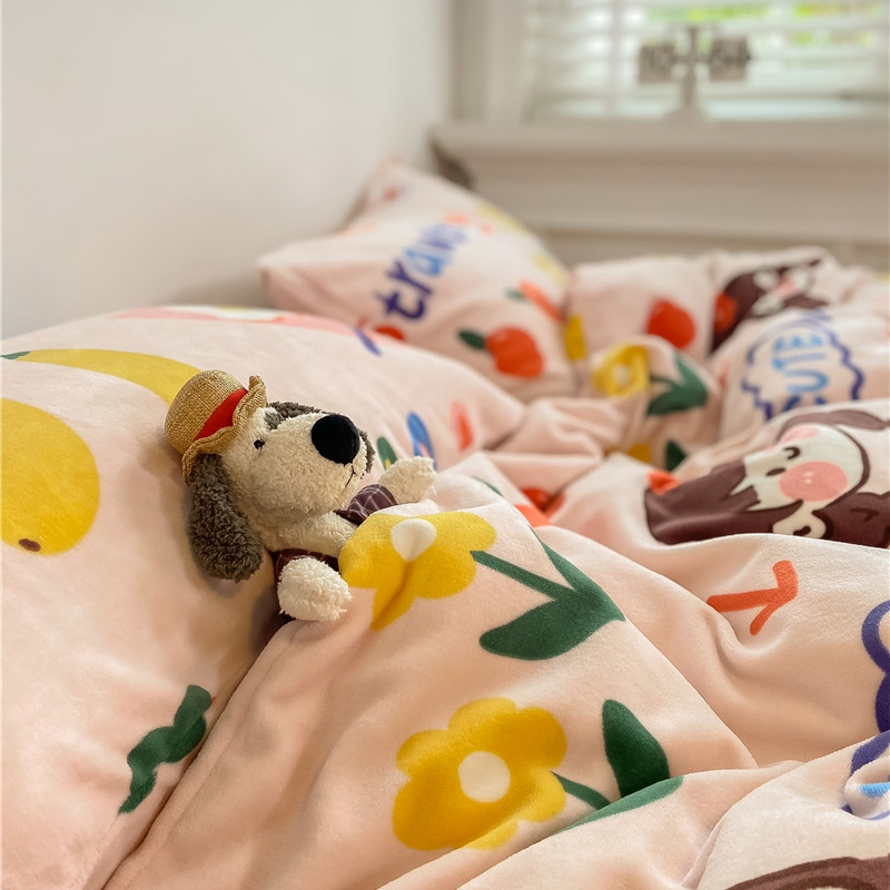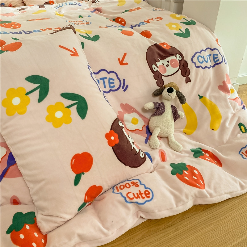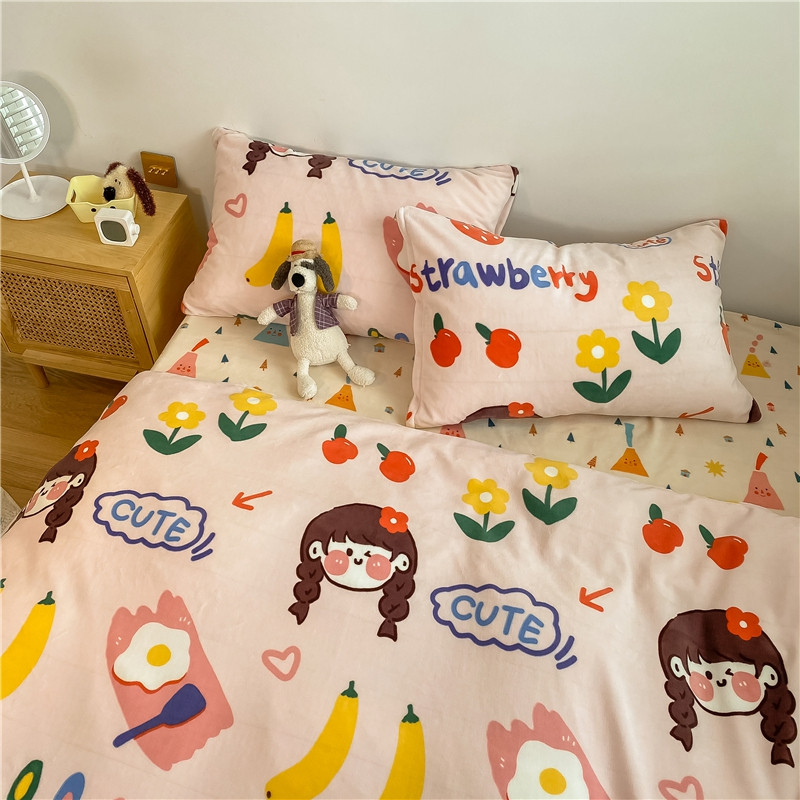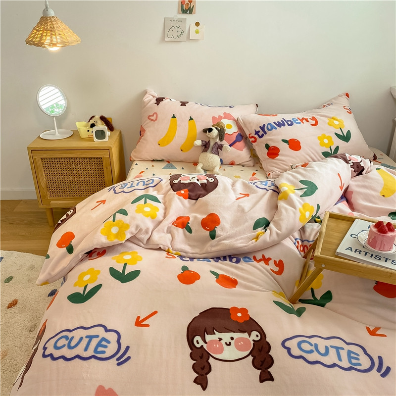 棉眠 2020新款秋冬卡通牛奶绒四件套 甜心女孩