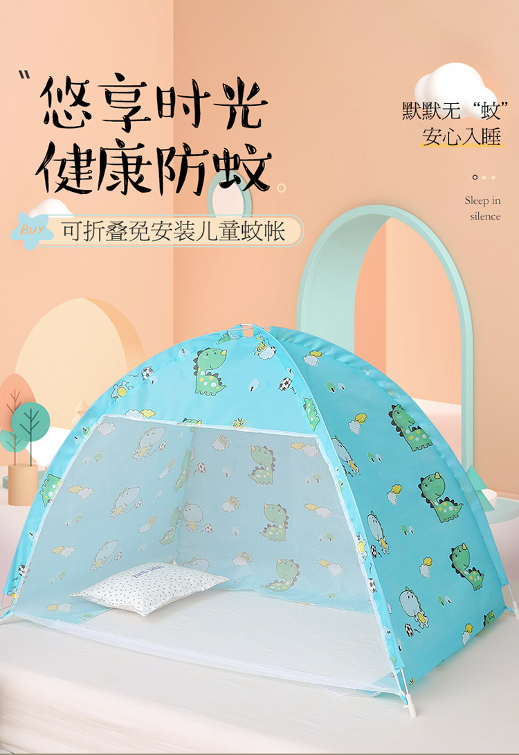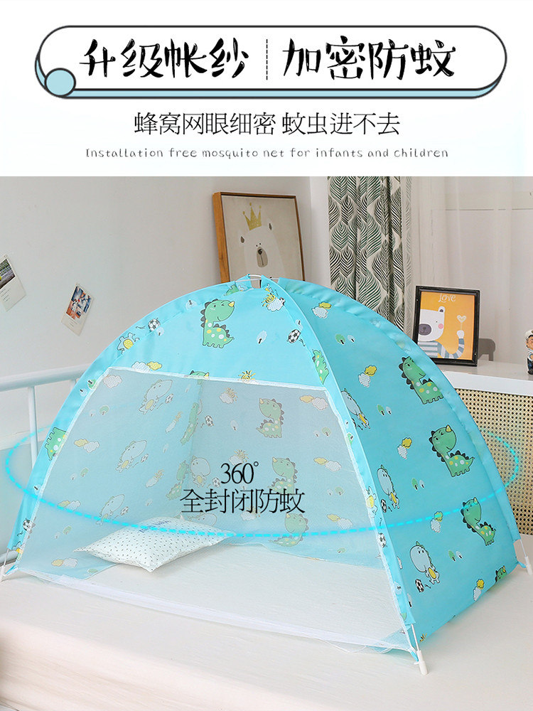 博诺蚊帐 2021新款防尘顶儿童蚊帐 蓝色恐龙