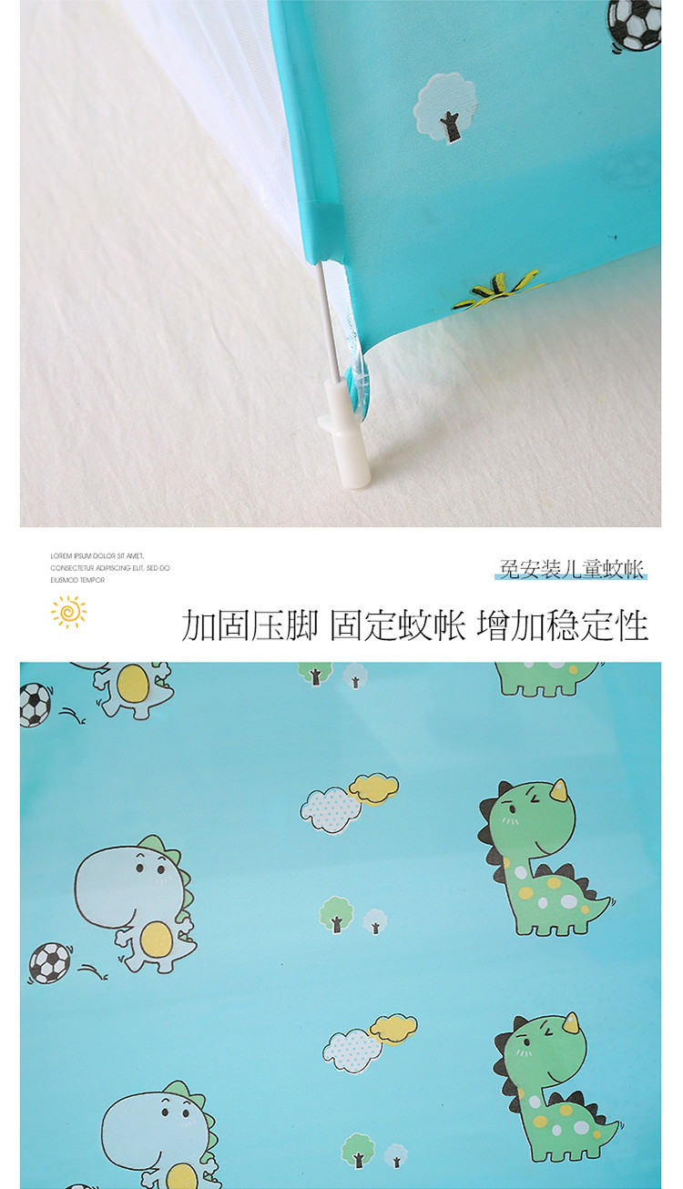商品名称:博诺蚊帐 2021新款防尘顶儿童蚊帐 蓝色恐龙