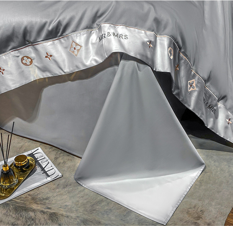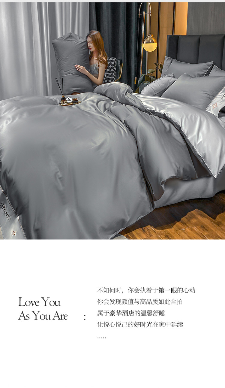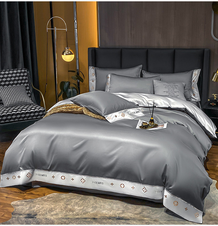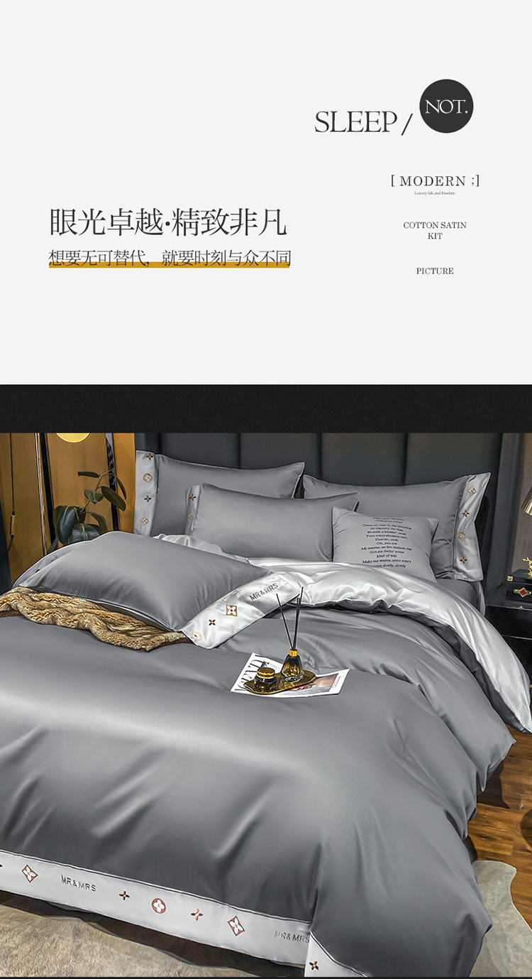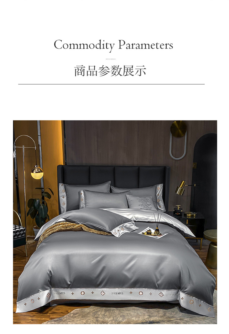 商品名称:蓝米卡夫 新款高档酒店款全棉贡缎长绒棉刺绣四件套-卡夫 绅士灰+银灰