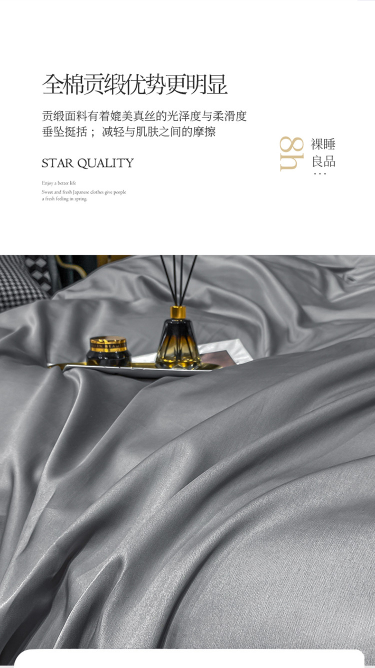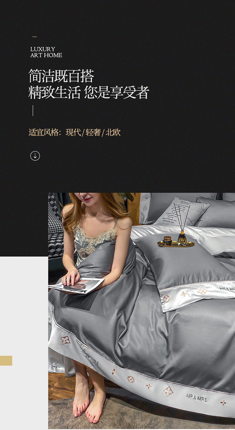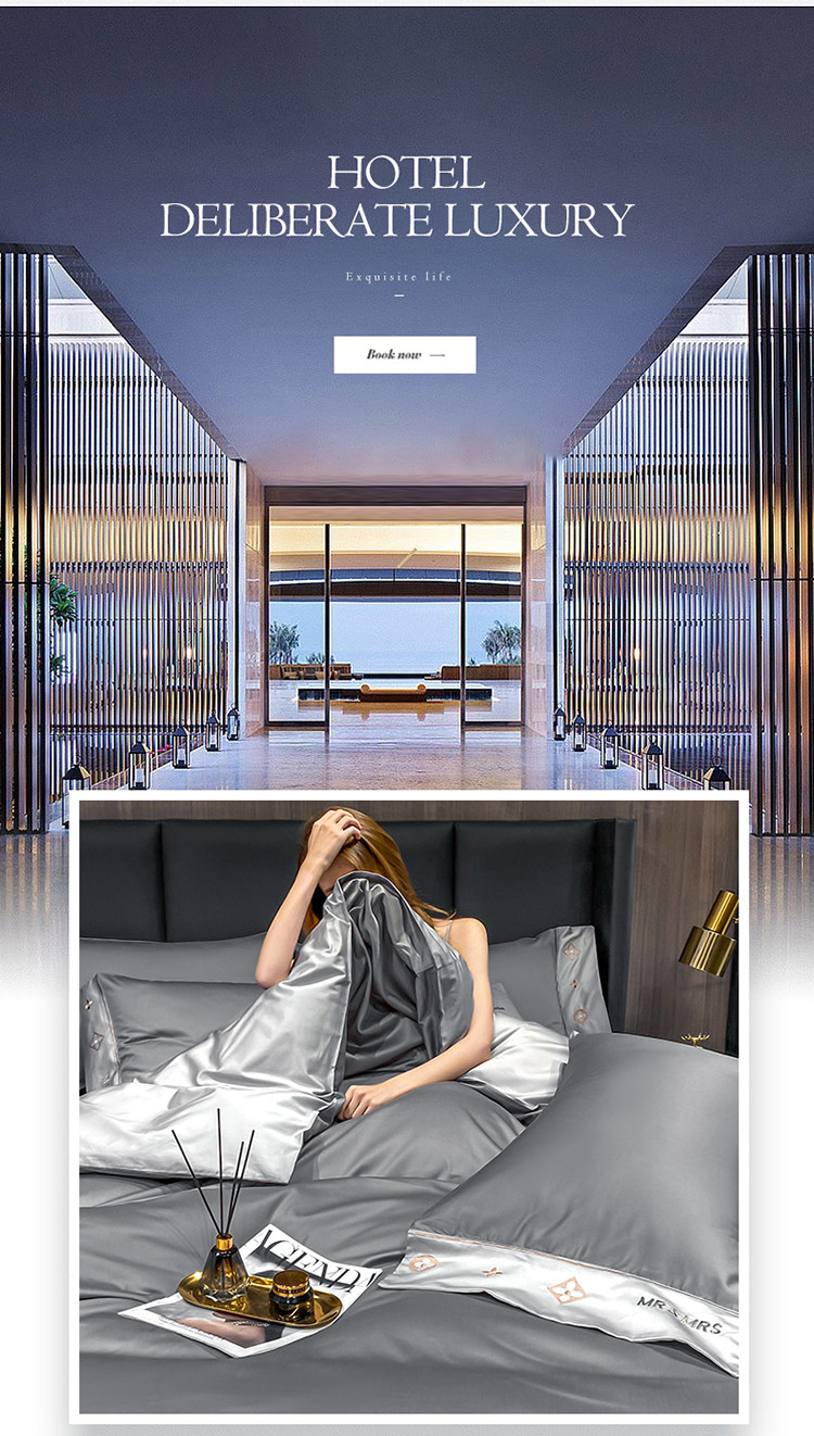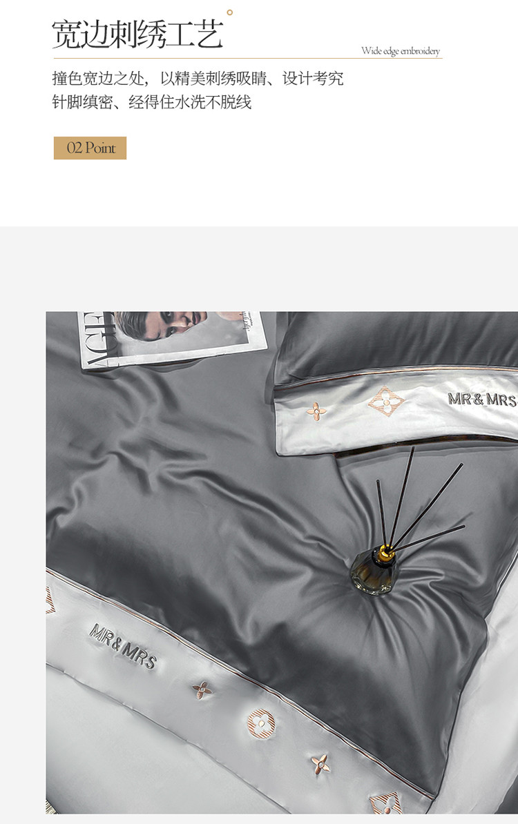 商品名称:蓝米卡夫 新款高档酒店款全棉贡缎长绒棉刺绣四件套-卡夫 绅士灰+银灰