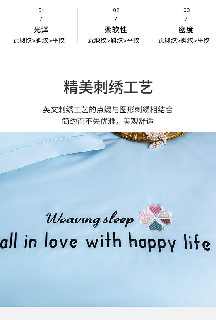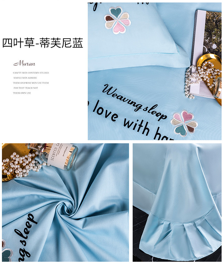 商品名称:U品汇 2021春夏新品60s长绒棉绣花全棉刺绣四件套四叶草 蒂芙尼蓝