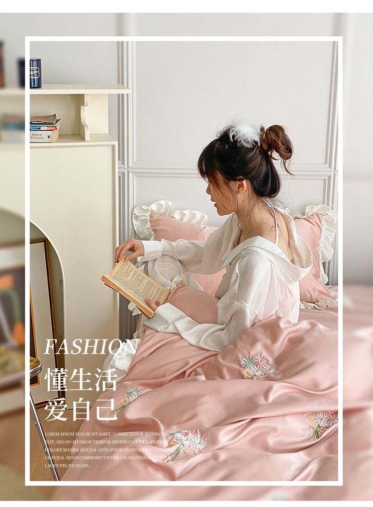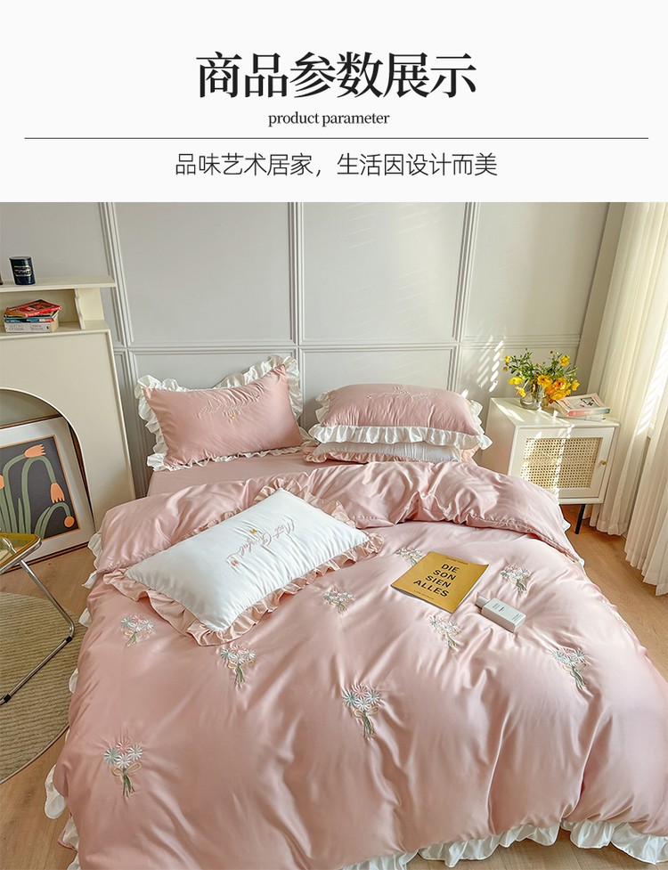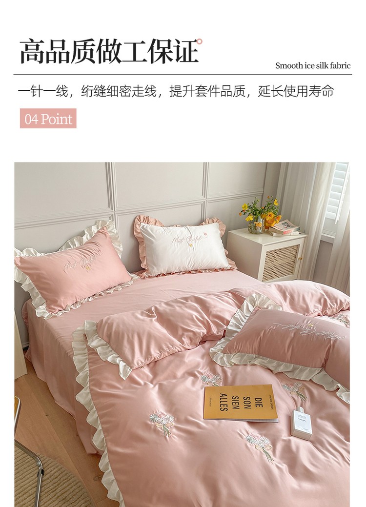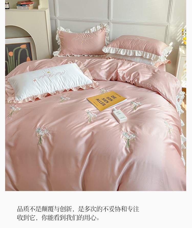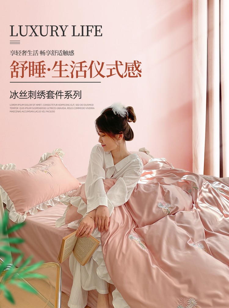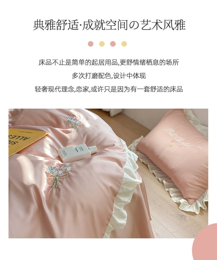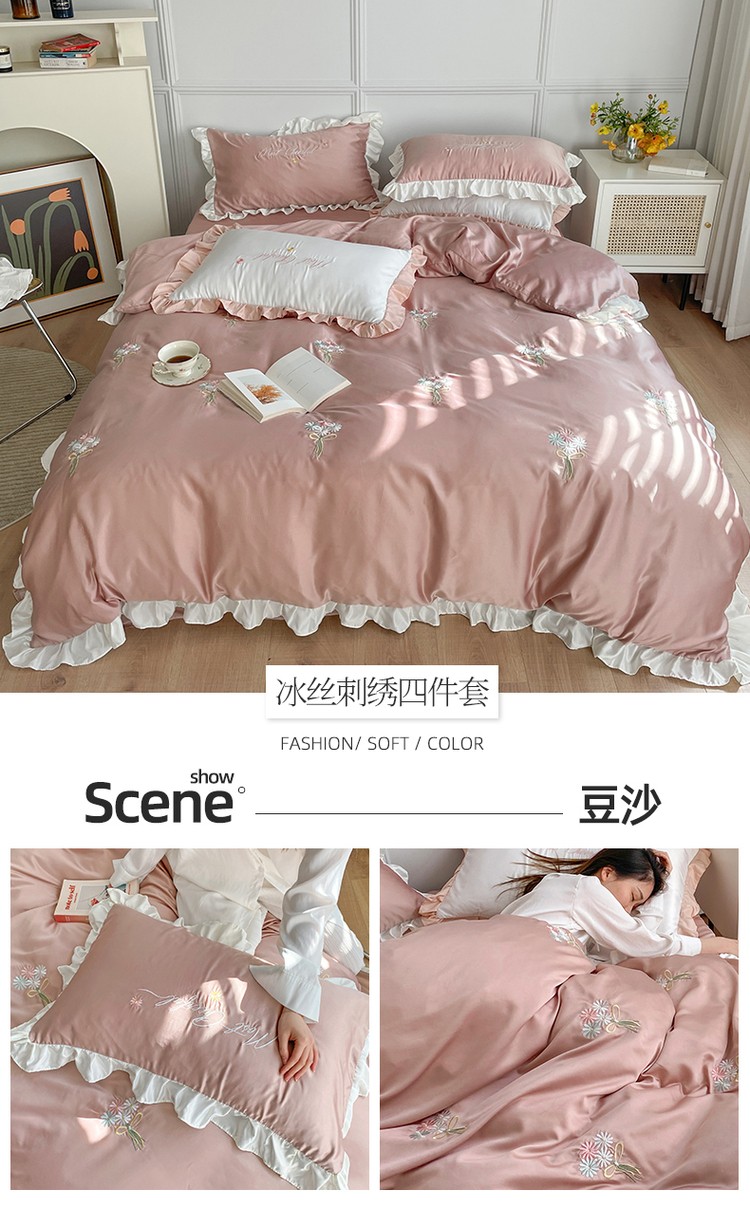 商品名称:优悦生活馆 2021新款冰丝绣花四件套-花溪 豆沙