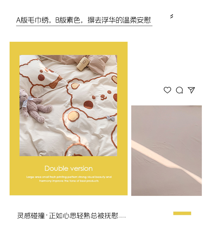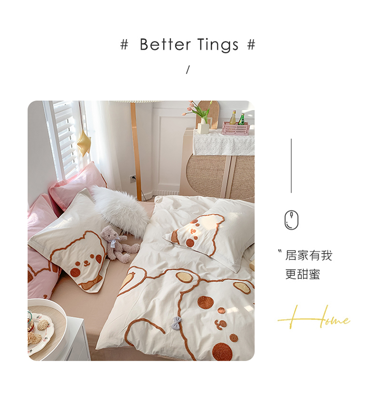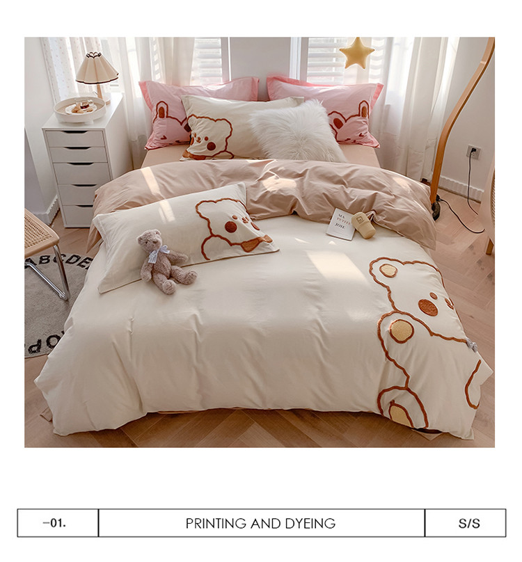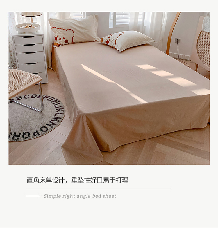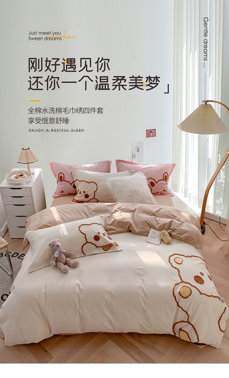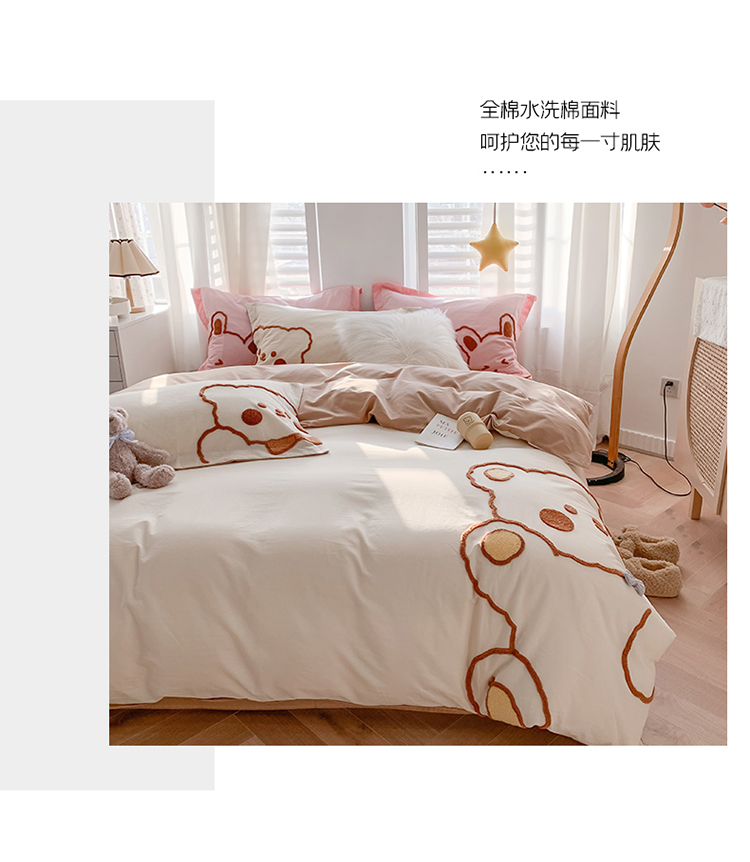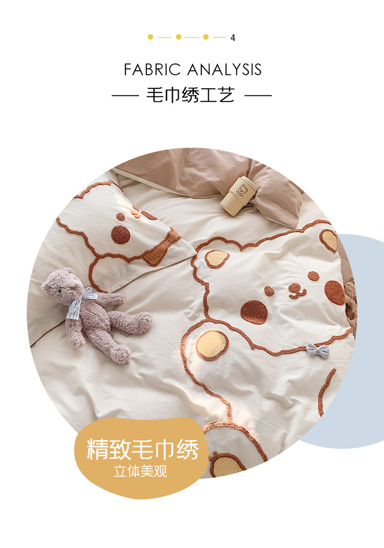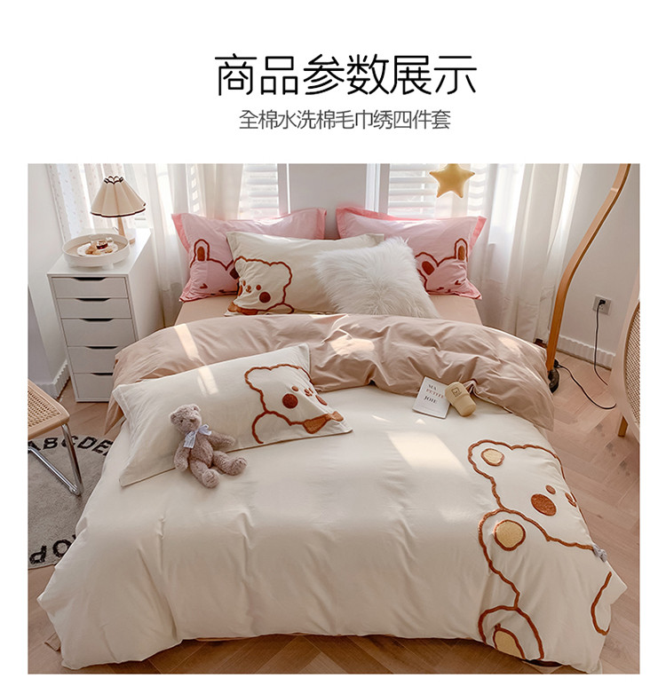 商品名称:蜜柚2021全棉水洗棉卡通毛巾绣小清新床单四件套萌萌熊-卡其