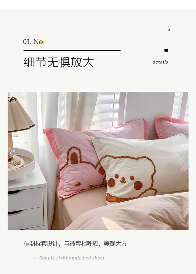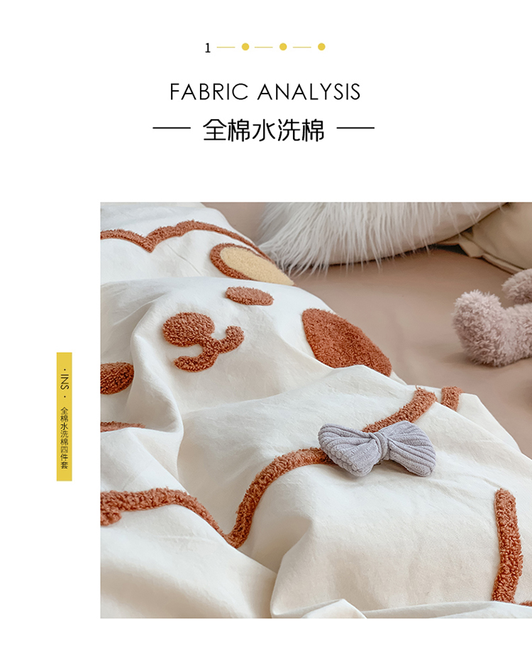 (总)蜜柚 2025秋冬新款色织水洗棉贴布花边款四件套,童趣-浅玉,童趣-卡其,童趣-洋气红